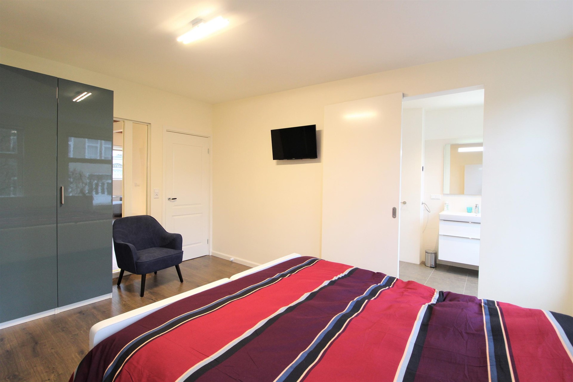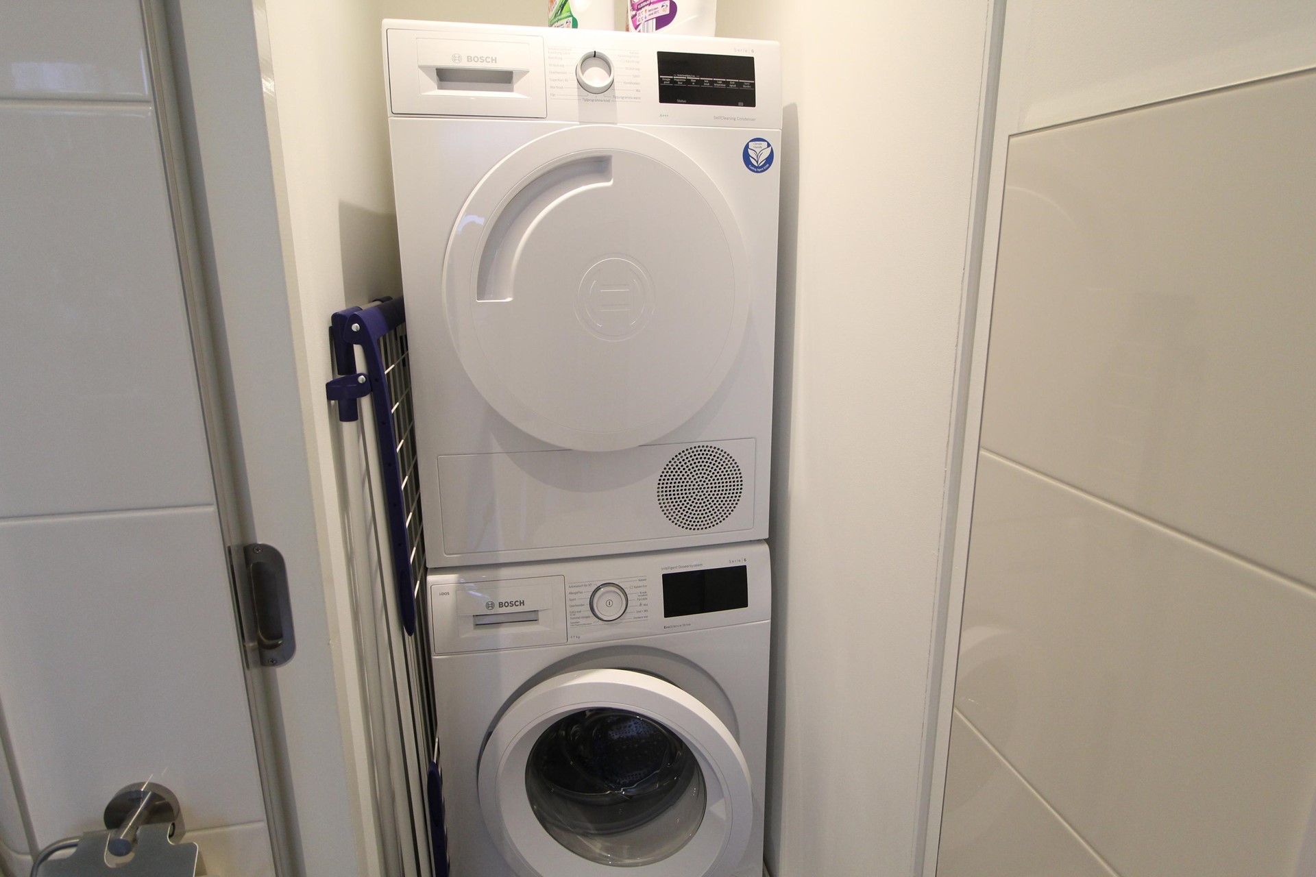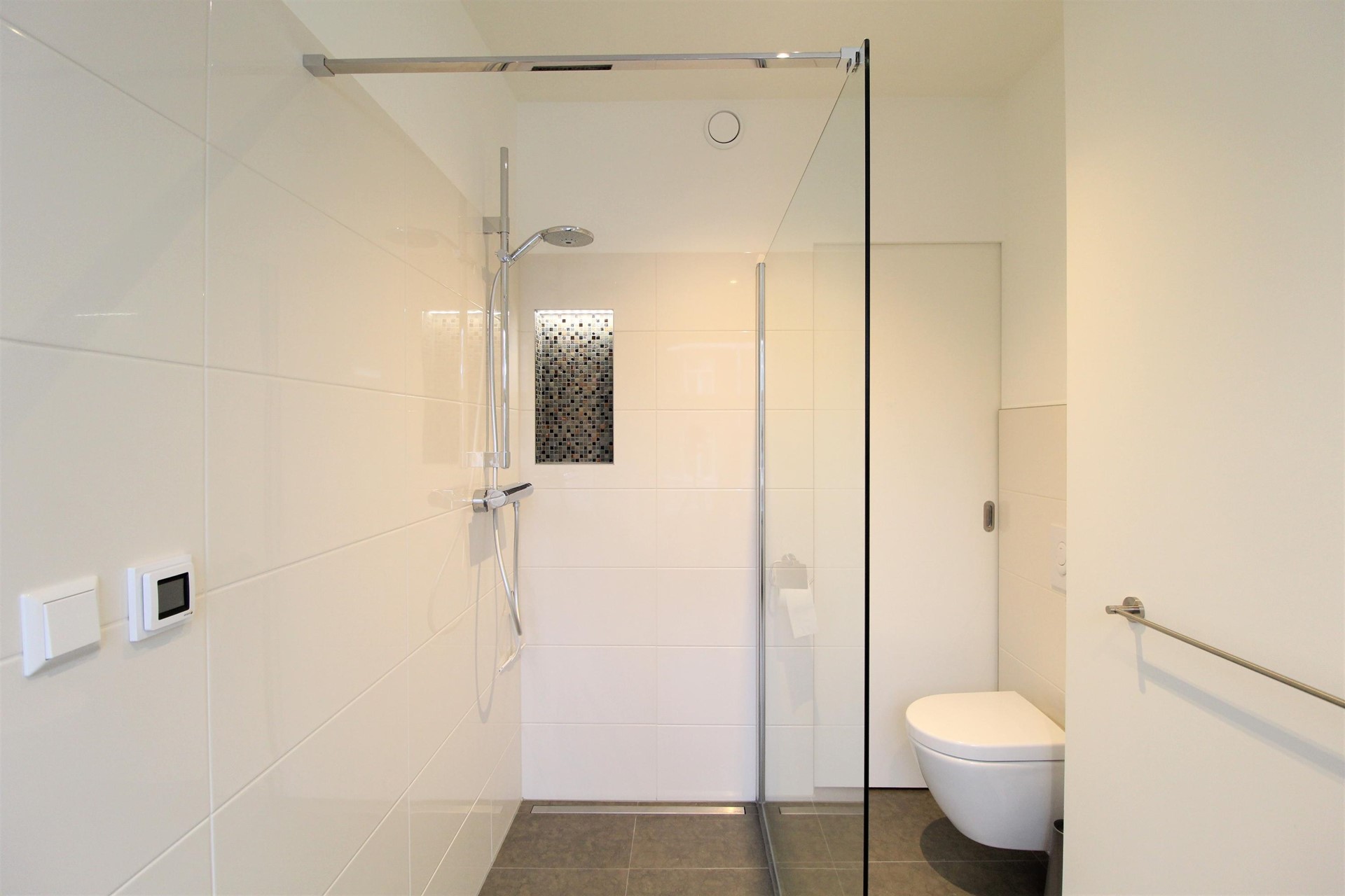 Very spacious bedroom at the rear of the apartment with acces to the bathroom with walk-in shower, washbasin, second toilet. A sliding door separates the washing/drying room from the bathroom.