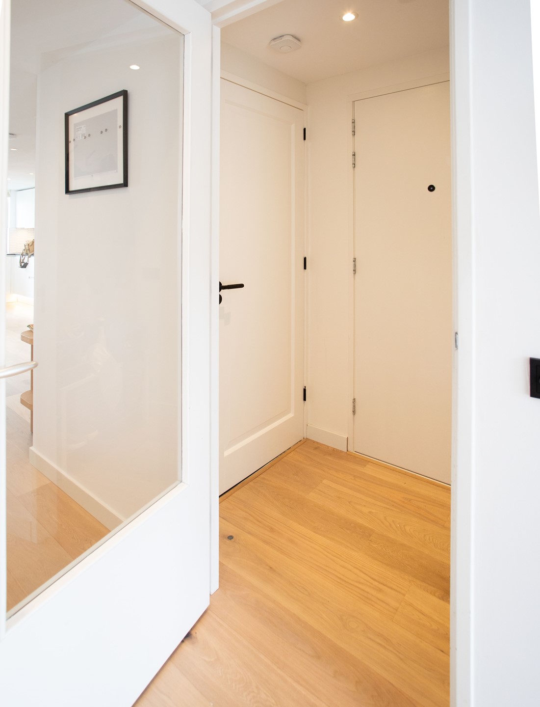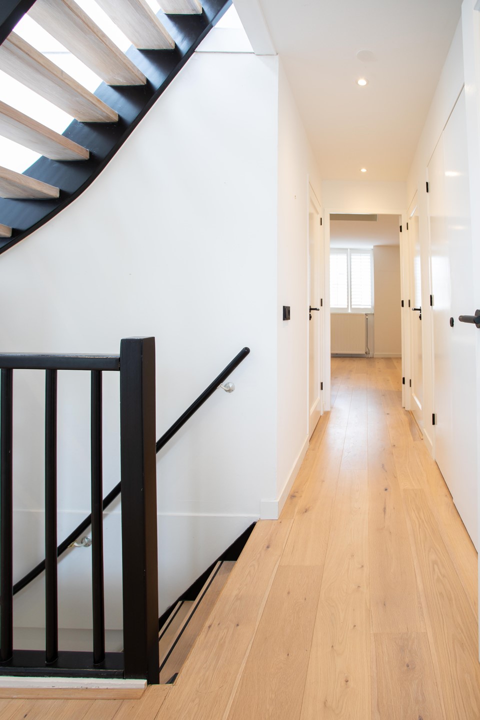De gehele woning is voorzien van een smaakvolle houten vloer en alle verlichting is te bedienen met een app.