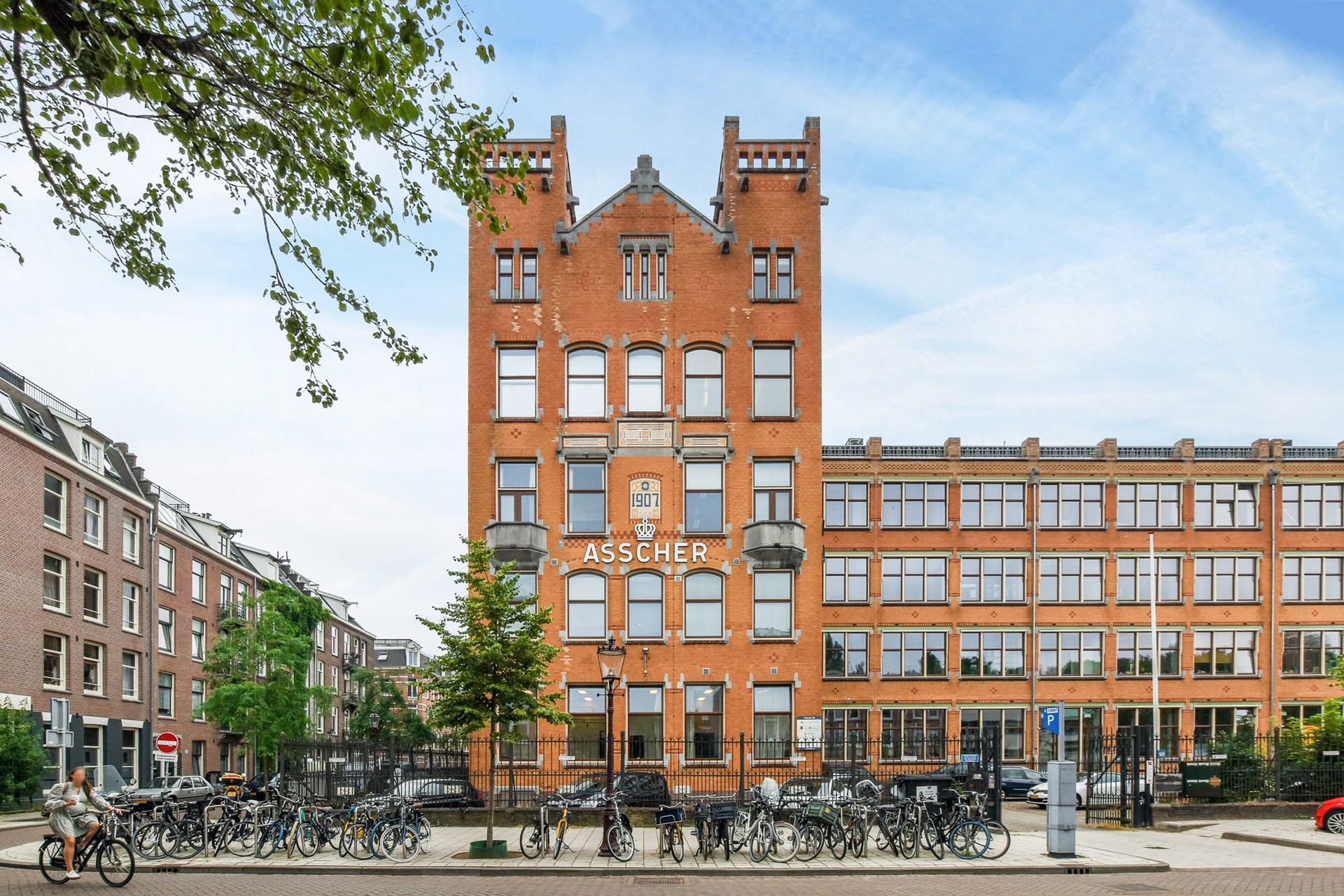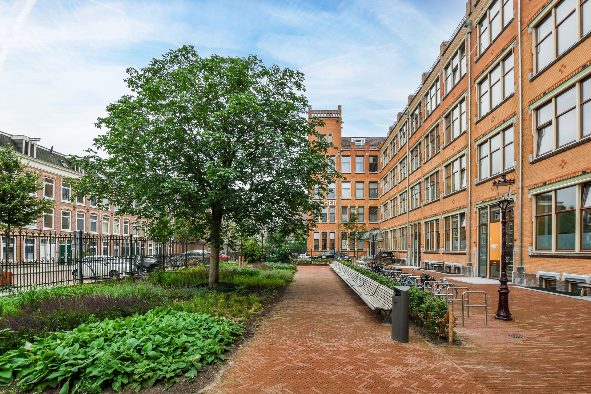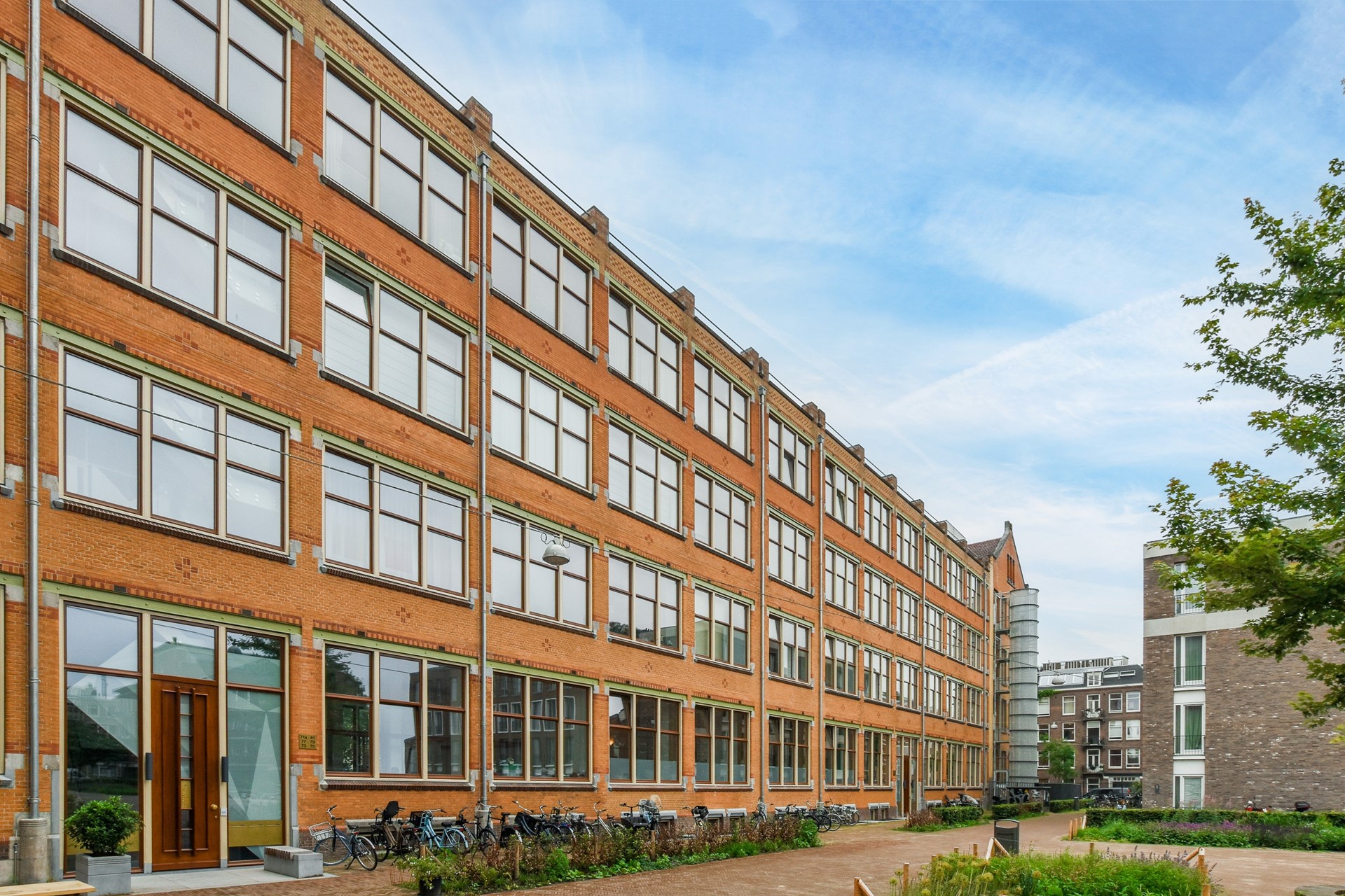 Architecturally designed and furnished apartment with elevator in the former diamond polishing factory in the Pijp area. The original building from 1907 was designed by Gerrit van Arkel and is now transformed into a multifunctional building.