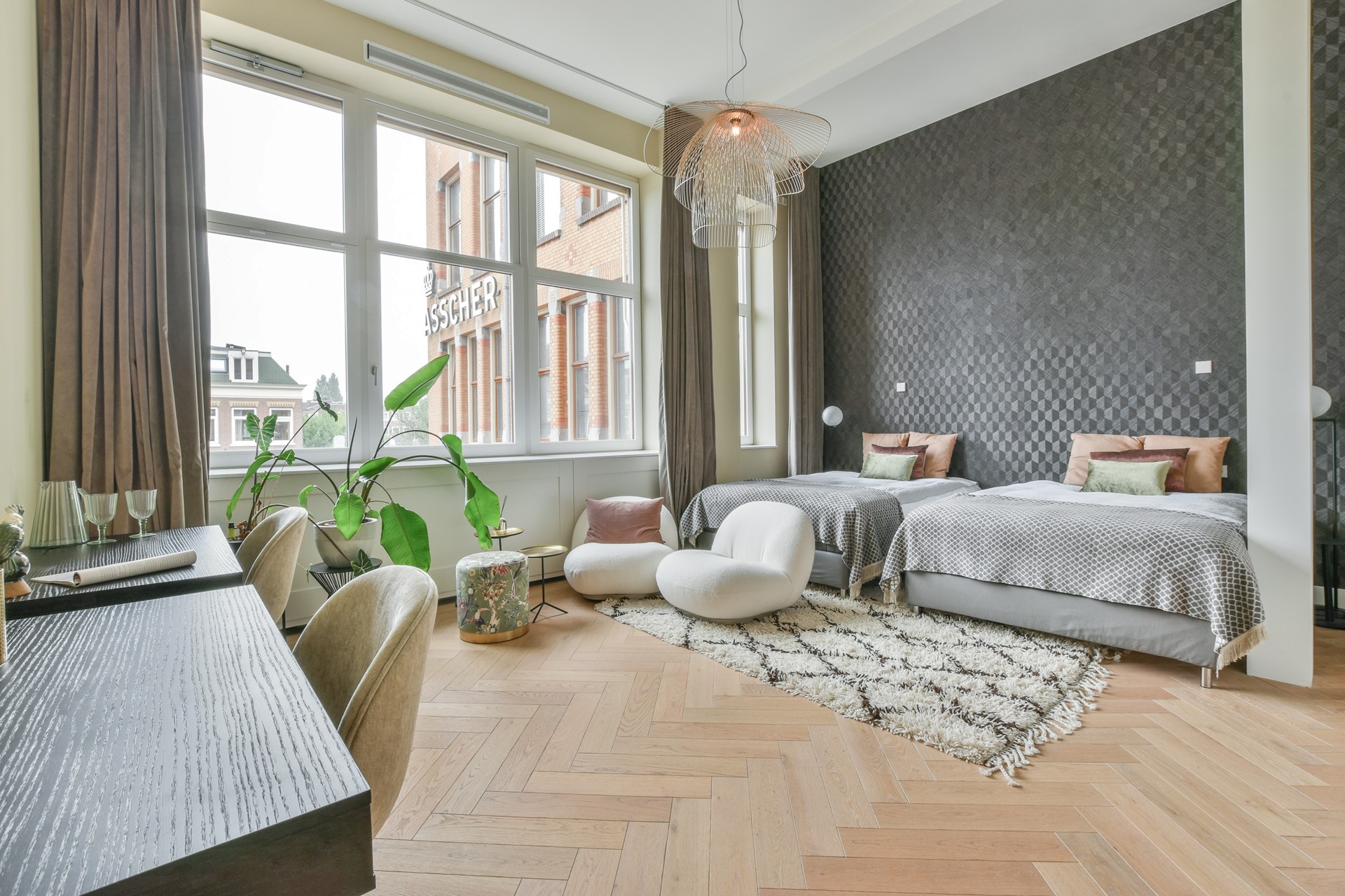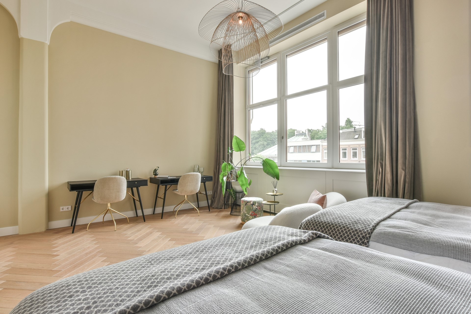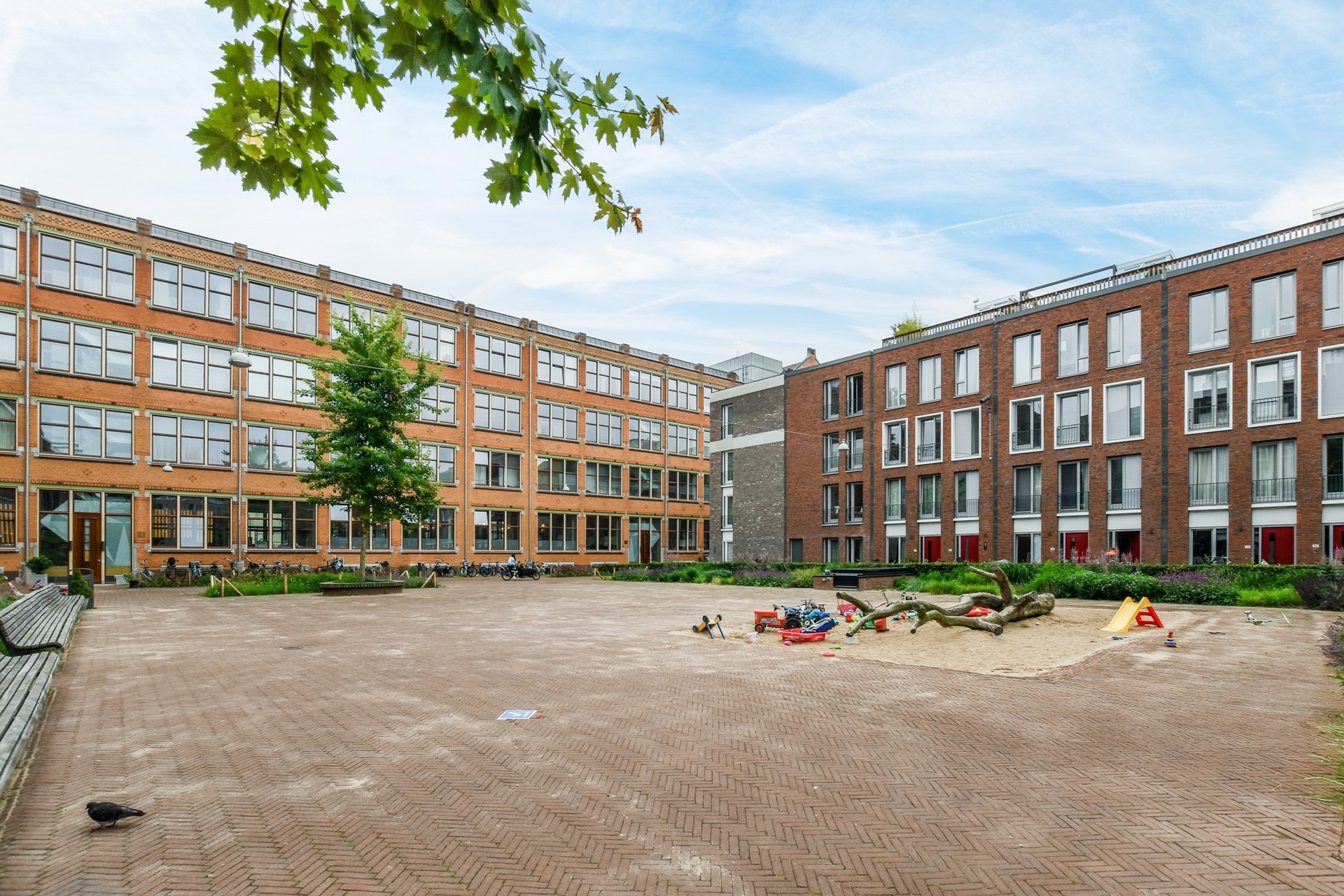 Architecturally designed and furnished apartment with elevator in the former diamond polishing factory in the Pijp area. The original building from 1907 was designed by Gerrit van Arkel and is now transformed into a multifunctional building.