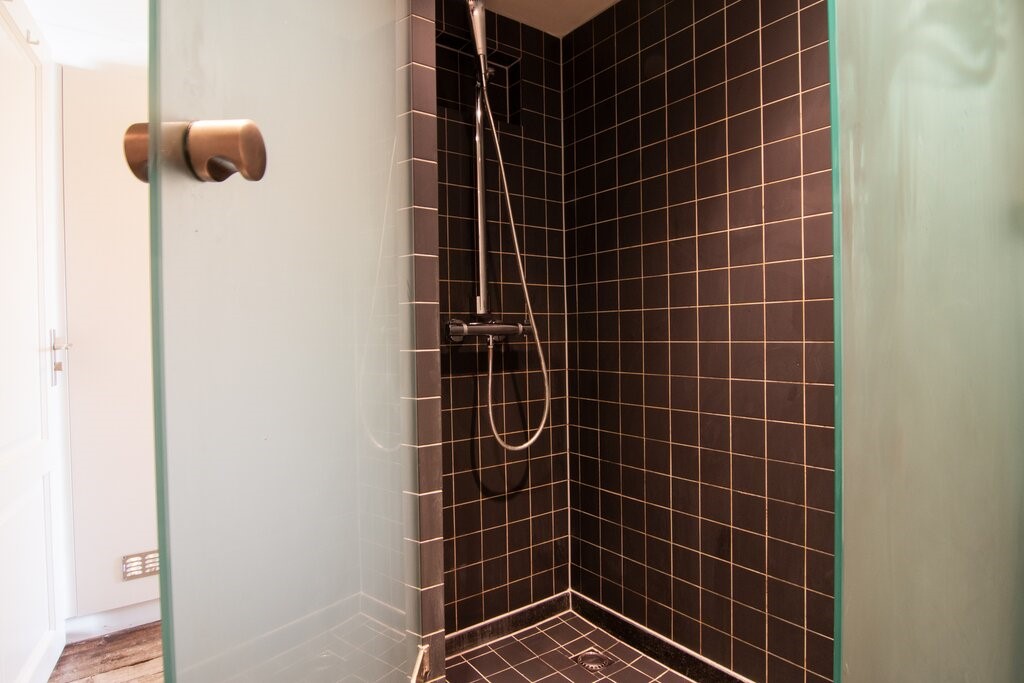 Third floor; hall with built-in cupboards washing machine and dryer, 2 well sized bedrooms also with built-in cupboards and original construction beams, bathroom in the middle with separate shower, bath tub, toilet, bidoir and sink, stairs to the sunny roof terrace.