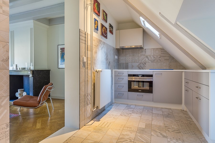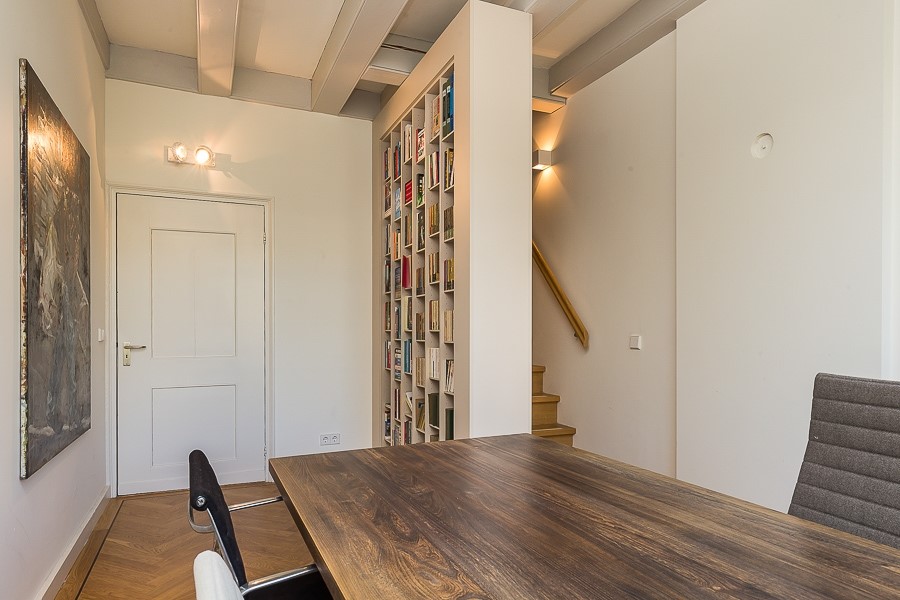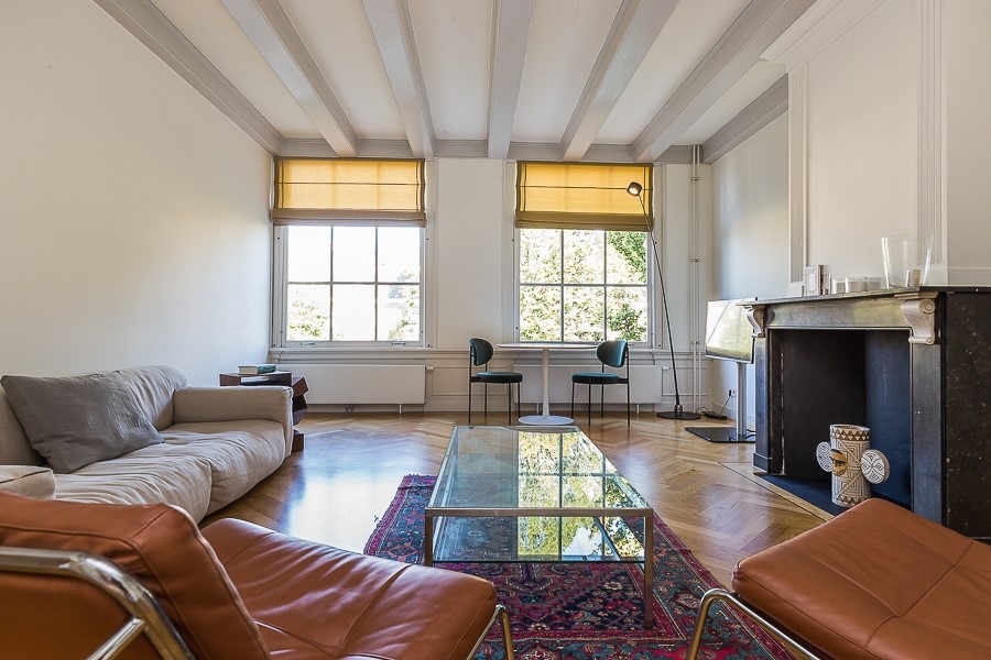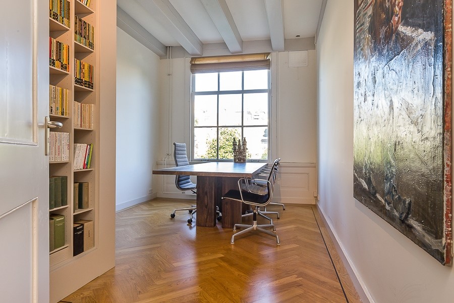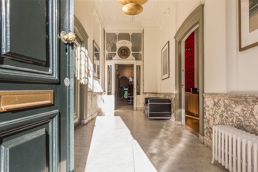 Entree via de bel-etage, imposante hal vanwaar men via de trap of lift de eerste etage bereikt, zeer ruime en lichte woonkamer welke modern is ingericht maar nog steeds een authentieke uitstraling heeft vanwege het behoud van originele elementen zoals de schouw, ornamenten, de balken en de ramen, aan de woonkamer grenst de half open keuken welke is voorzien van alle wenselijke inbouw apparatuur eveneens grenzend aan de woonkamer is de stijlvolle studeer kamer vanwaar je met de interne trap de tweede etage bereikt met slaapkamer, de badkamer en het separate toilet.