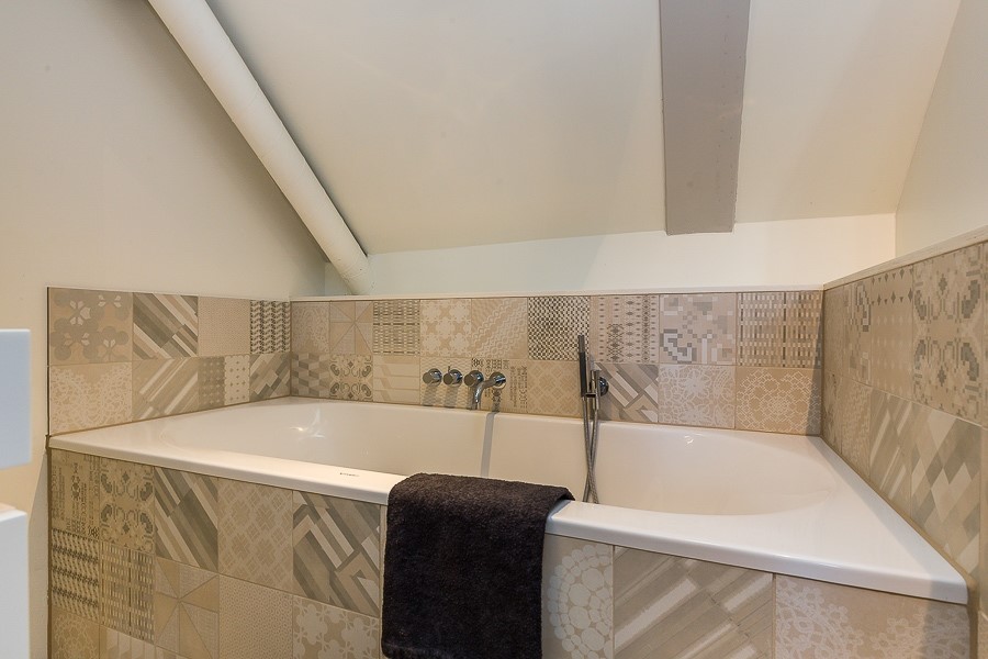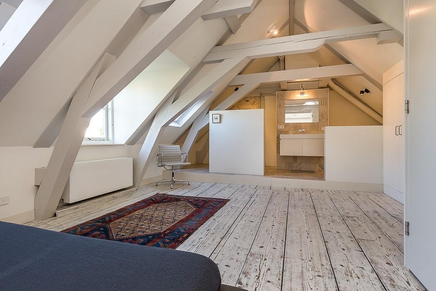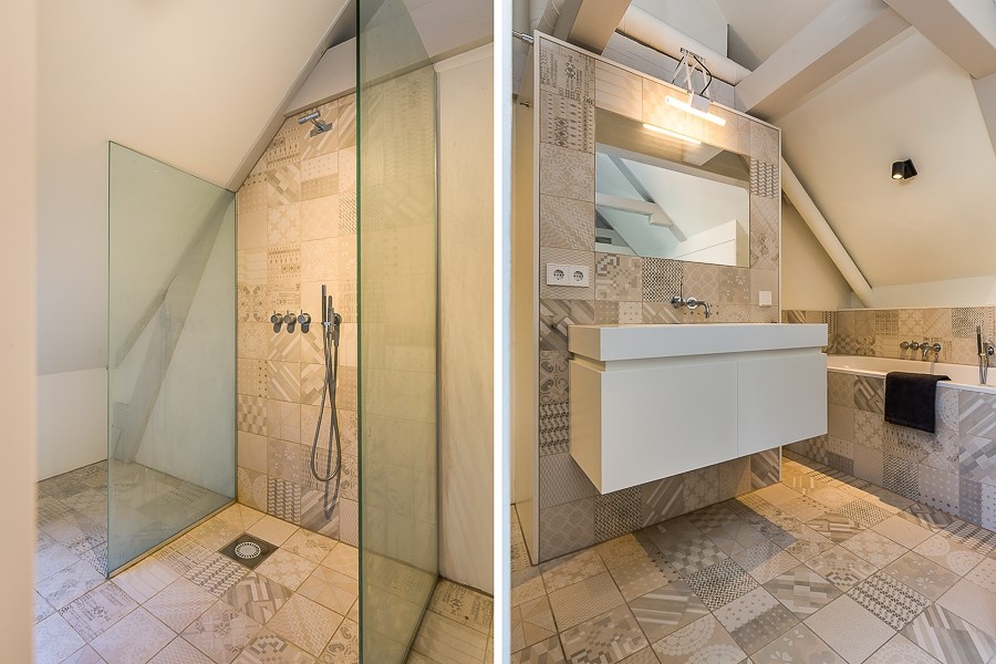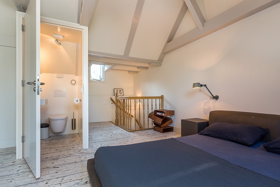 De slaapkamer is groots en licht en heeft een moderne van alle gemakken voorziene badkamer met aparte douche, zwevend bad-meubel met wastafel en een ligbad.