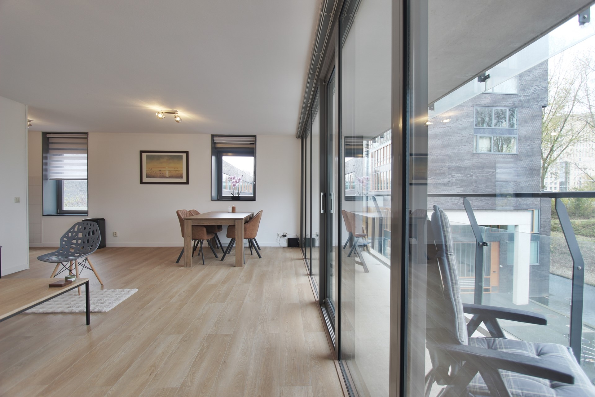 Via de gemeenschappelijke entree bereik je de centrale hal met toegang tot de lift naar de derde verdieping en toegang tot de gezamenlijke fietsenberging. De hal, met garderobe en toilet, geeft toegang tot alle ruimtes. Het gehele appartement is voorzien van dubbel glas. De woonkamer voelt ruim en licht aan door de hoekligging en grote raampartijen. Het ruime balkon van circa 11 m2 is via een schuifdeur te bereiken en is gelegen op het oosten.