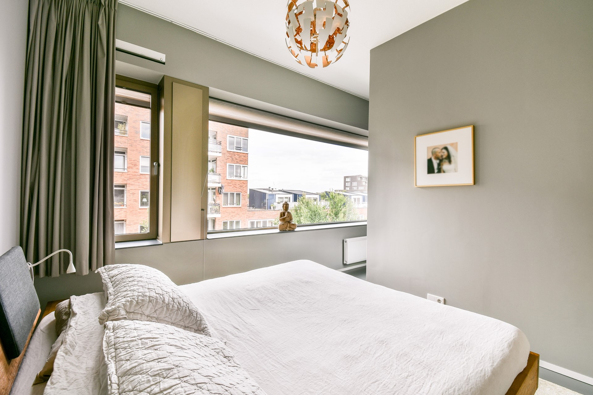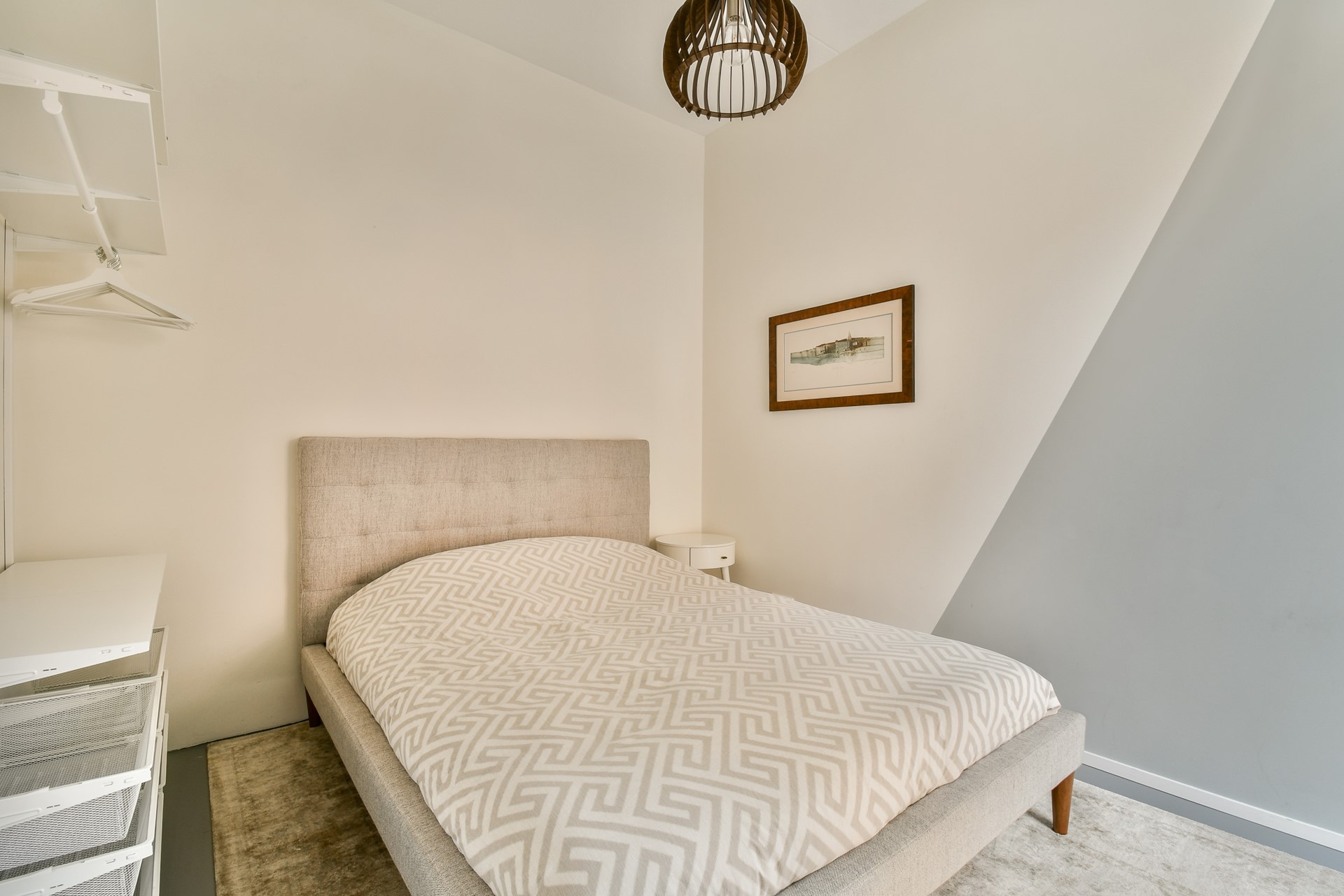 Op de bovenste verdieping bevindt zich een extra slaapkamer, voorzien van een ruime inloopkast. De hal die naar deze kamer leidt, is momenteel ingericht als werkruimte en biedt toegang tot het zonnige dakterras op het zuiden. Dit kan ook prima fungeren als hobbyruimte.