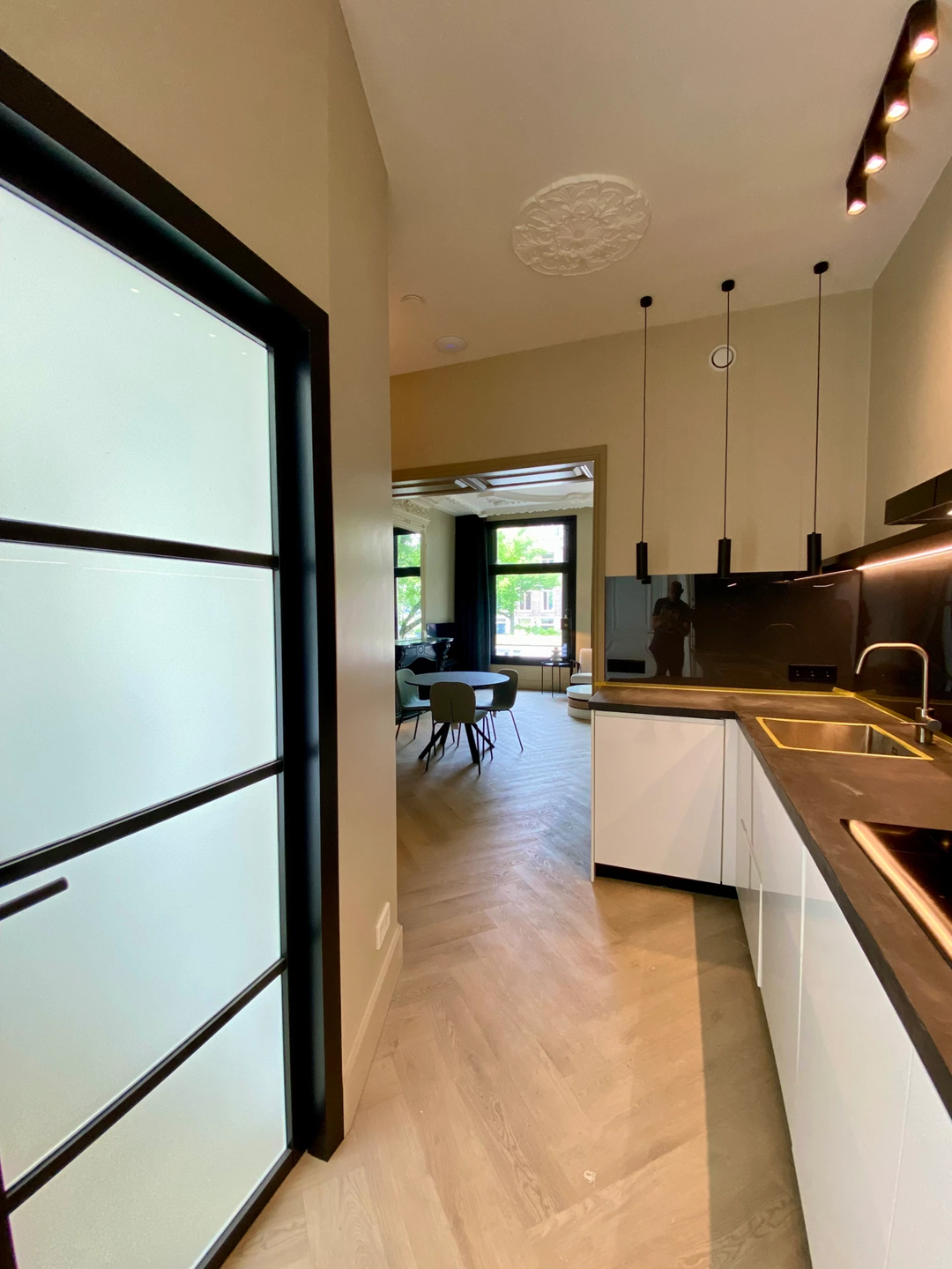 This luxury apartment is situated on one of Amsterdam's most beautiful and historic canals, between the Utrechtsestraat and the Amstel River. This highly desirable location offers a fantastic view of the Amstel and the famous Blauwbrug bridge. The area seamlessly combines the elegance of canal-side living with the convenience of a central city location.