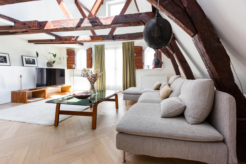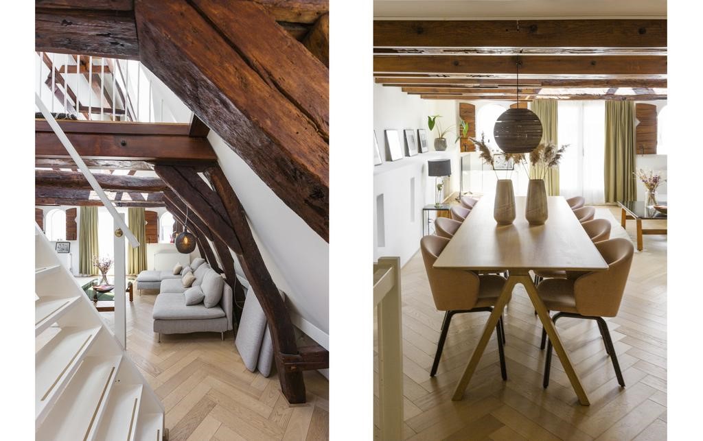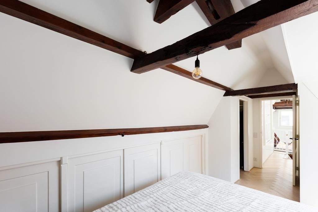 This charming apartment is part of the by architect renovated 17th century monumental building 'Het Okervat'. During the renovation in 1994 they paid a lot of attention to a high level of finish and remaining authentic details, like beautiful original beams and roof structure.