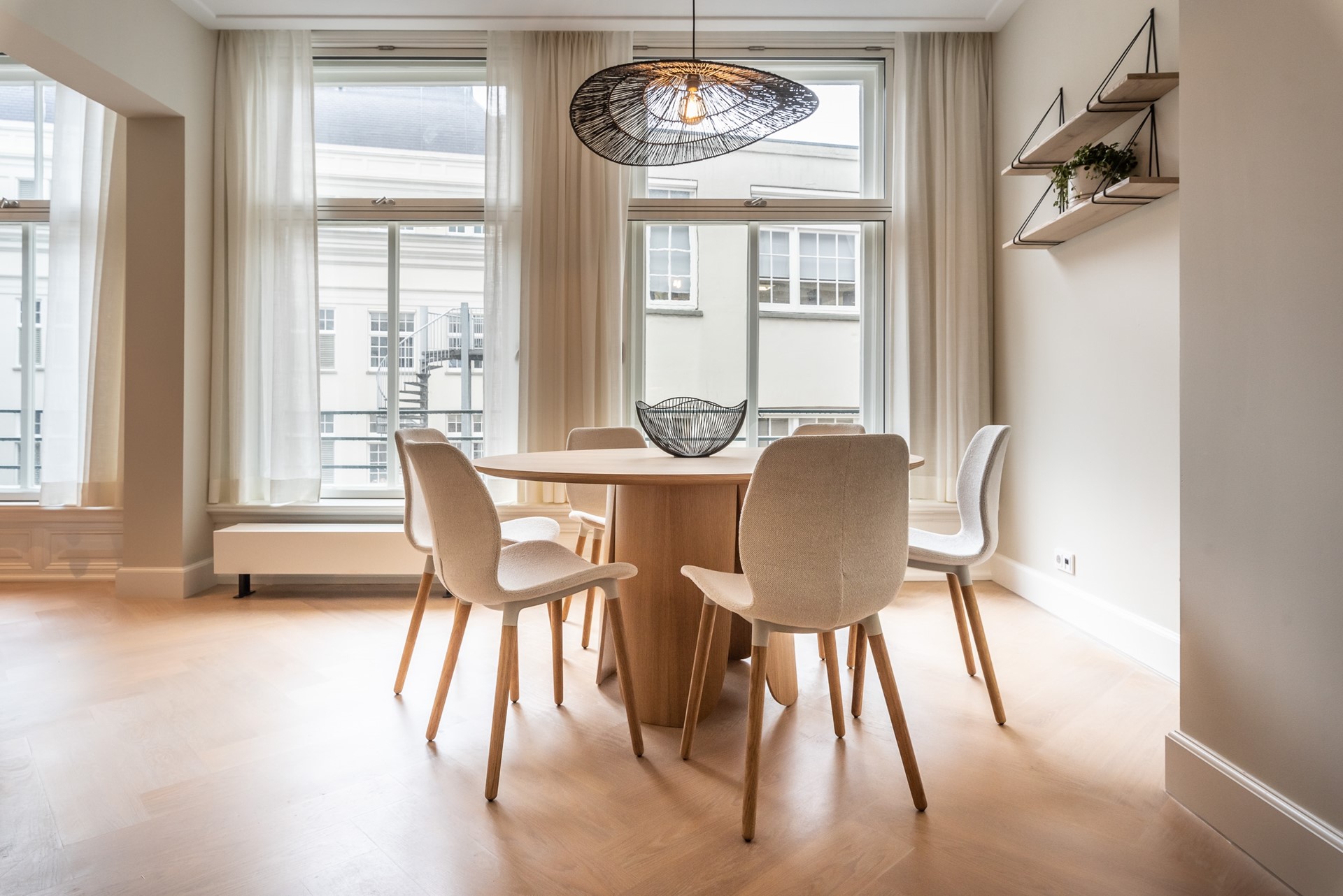 Entering the fenced stairway on street level, you can already breathe the history of this building, situated a stone’s throw away from the beautiful Vondelpark and lively Leidseplein. On the fourth floor, you will enter apartment D.