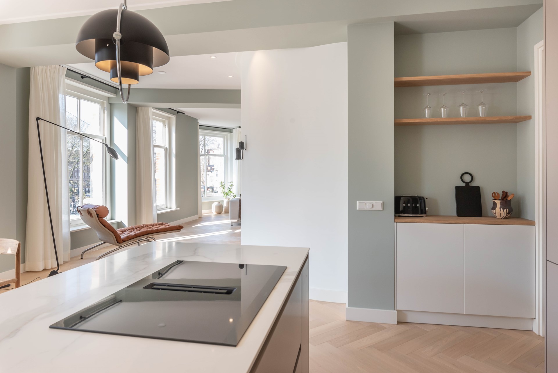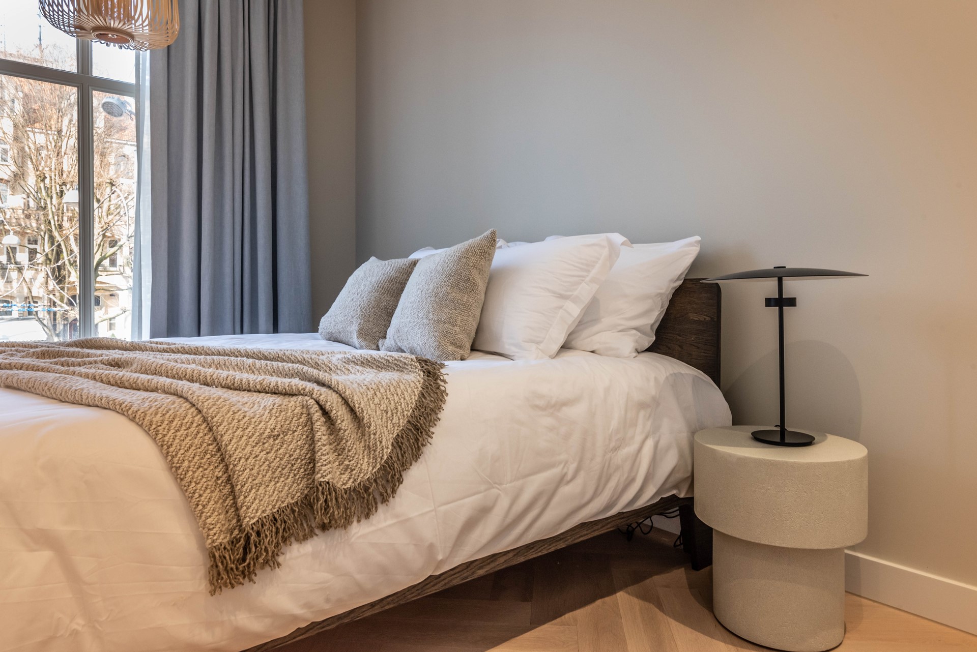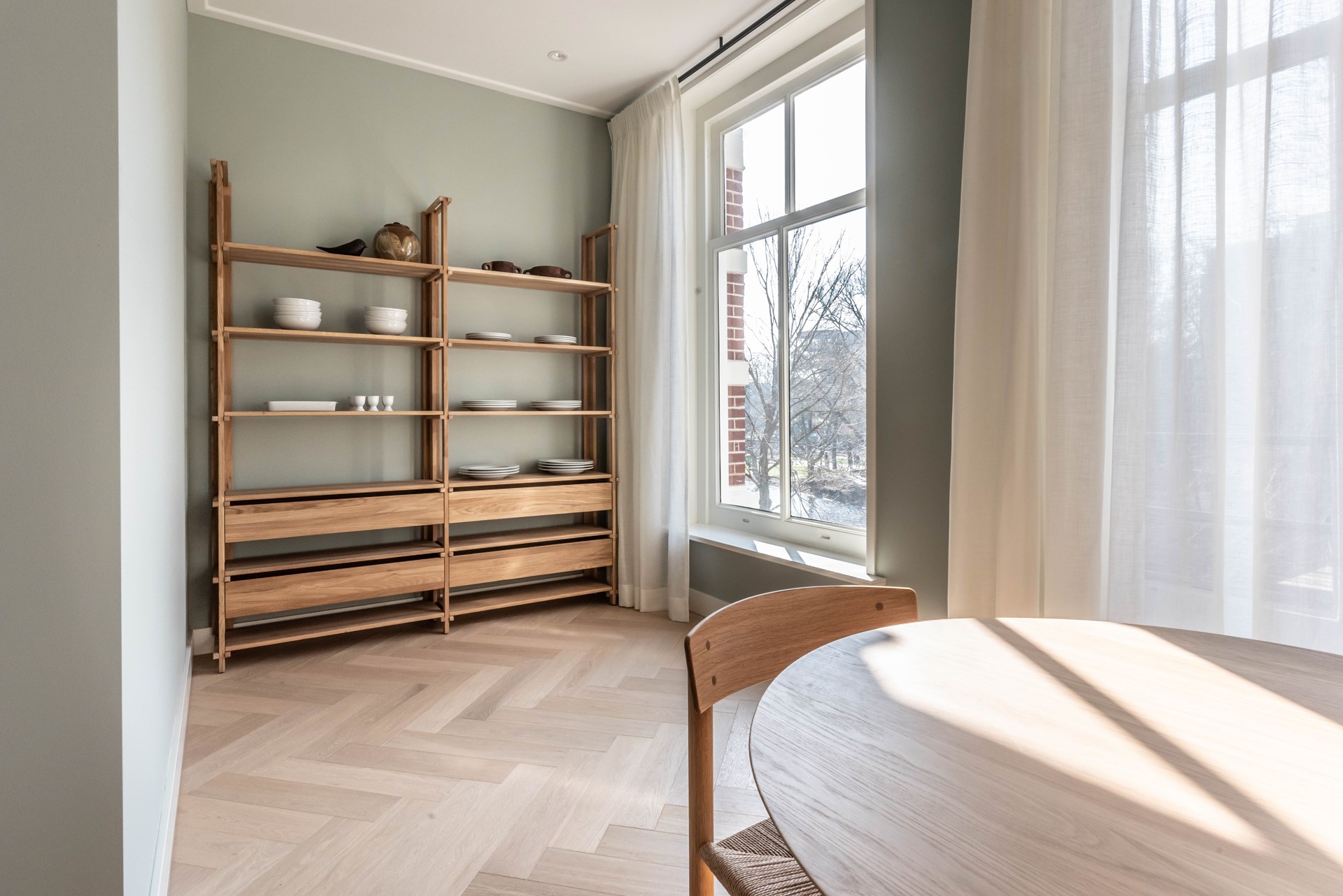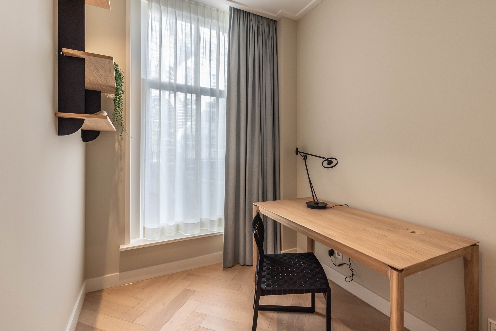 We proudly present high-end renovated, newly furnished, and styled turn-key apartments in a monumental canal house on Leidsekade. During the renovation of this building, conscious choices were made for sustainable redevelopment on the one hand and the preservation of the original architectural aspects on the other, all while maintaining a highly luxurious standard. All apartments are furnished with high-end design furniture and equipped with high-speed internet, a water purification system, a high-quality ventilation system, and have an A+ energy rating. All apartments come with mandatory bi-weekly cleaning.