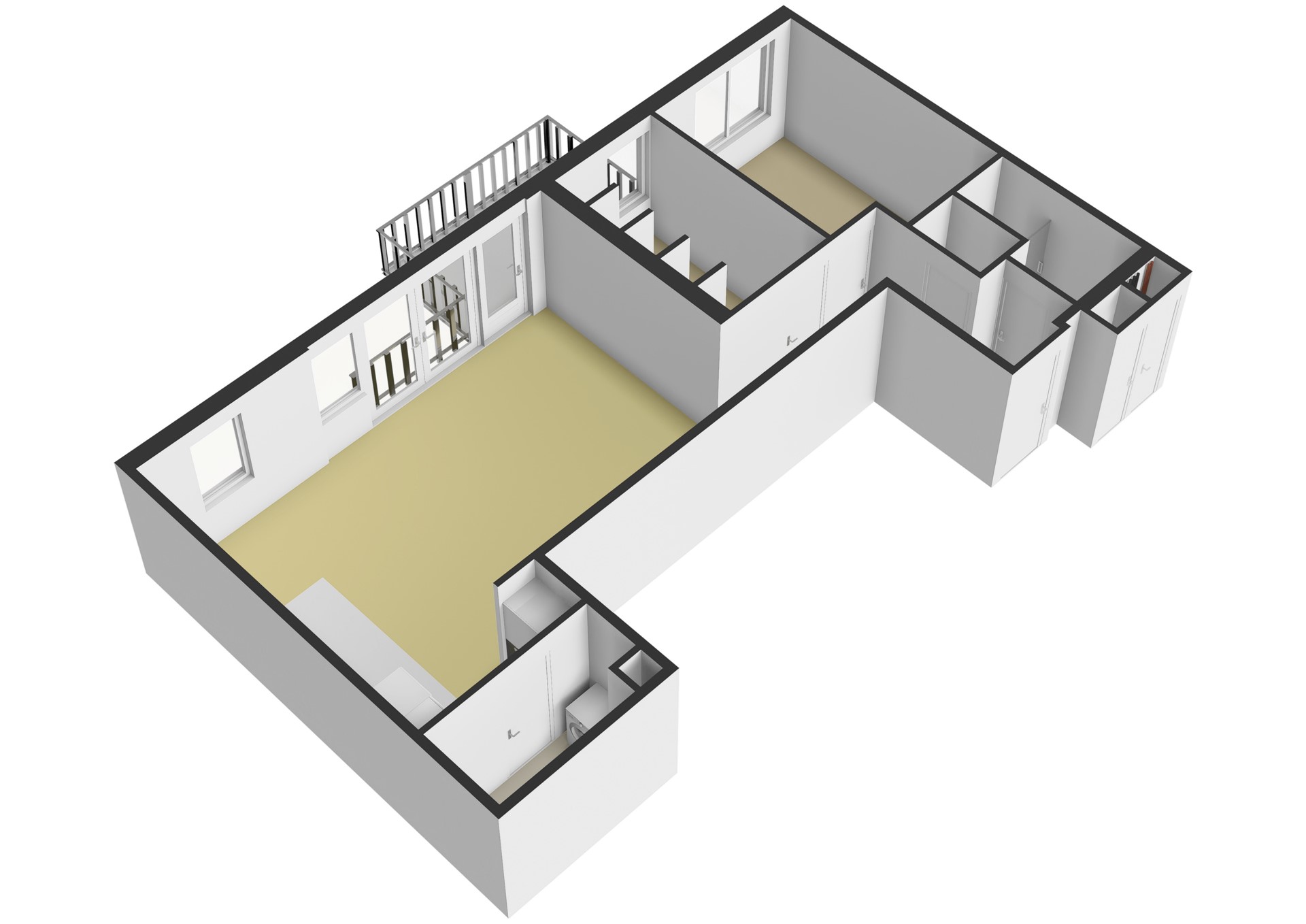 There is a pantry situated next to the kitchen for extra storage and the washing machine.