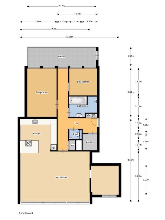- Balcony of approx 14 m2 (Not measured according NEN2580)