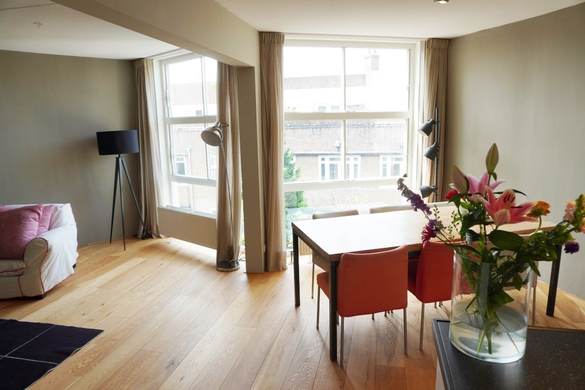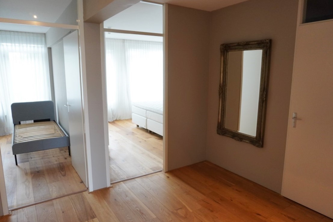 We offer a fully furnished modern, spacious and bright 03 room apartment of approximately 100 m² with a terrace located in the popular Zuid district. The apartment building with elevator was built in 2001 and designed by the well-known architect Liesbeth van de Pol, Government Architect until 2011. The architecture fits into the existing environment and clearly has the style characteristics of the Amsterdam School, it consists of a total of 27 luxury apartments with a high level of finish and large windows. The neighborhood is quiet and child-friendly. The house is located on a square where there are no cars and there are many play areas.