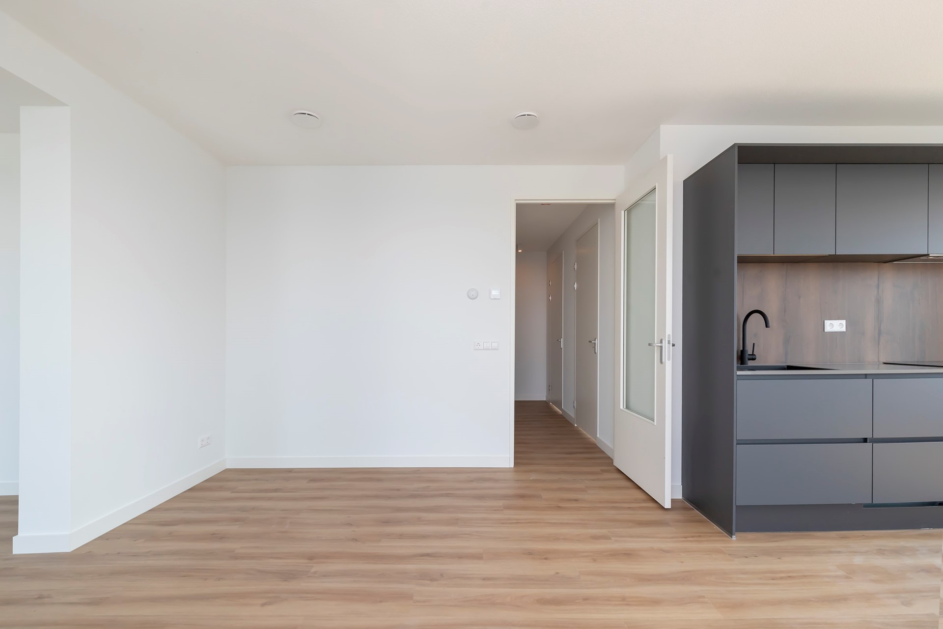 The apartment will be delivered in an unfurnished condition, including floor, fully equipped kitchen, curtains and ceiling lights.