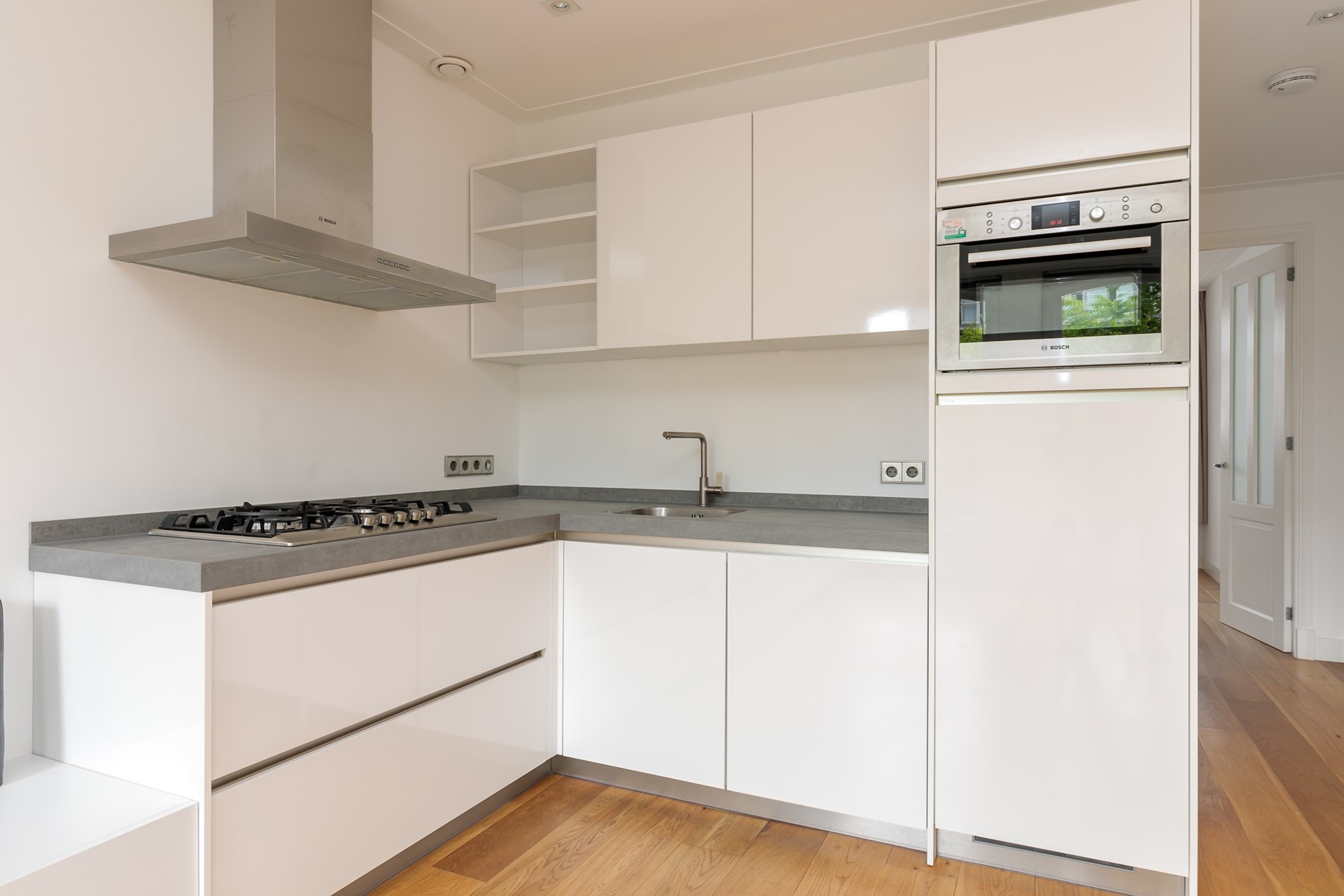 Entree, hal met toegang tot ruime en lichte aan de voorzijde gelegen woonkamer, open keuken in L-opstelling met alle wenselijke inbouwapparatuur.