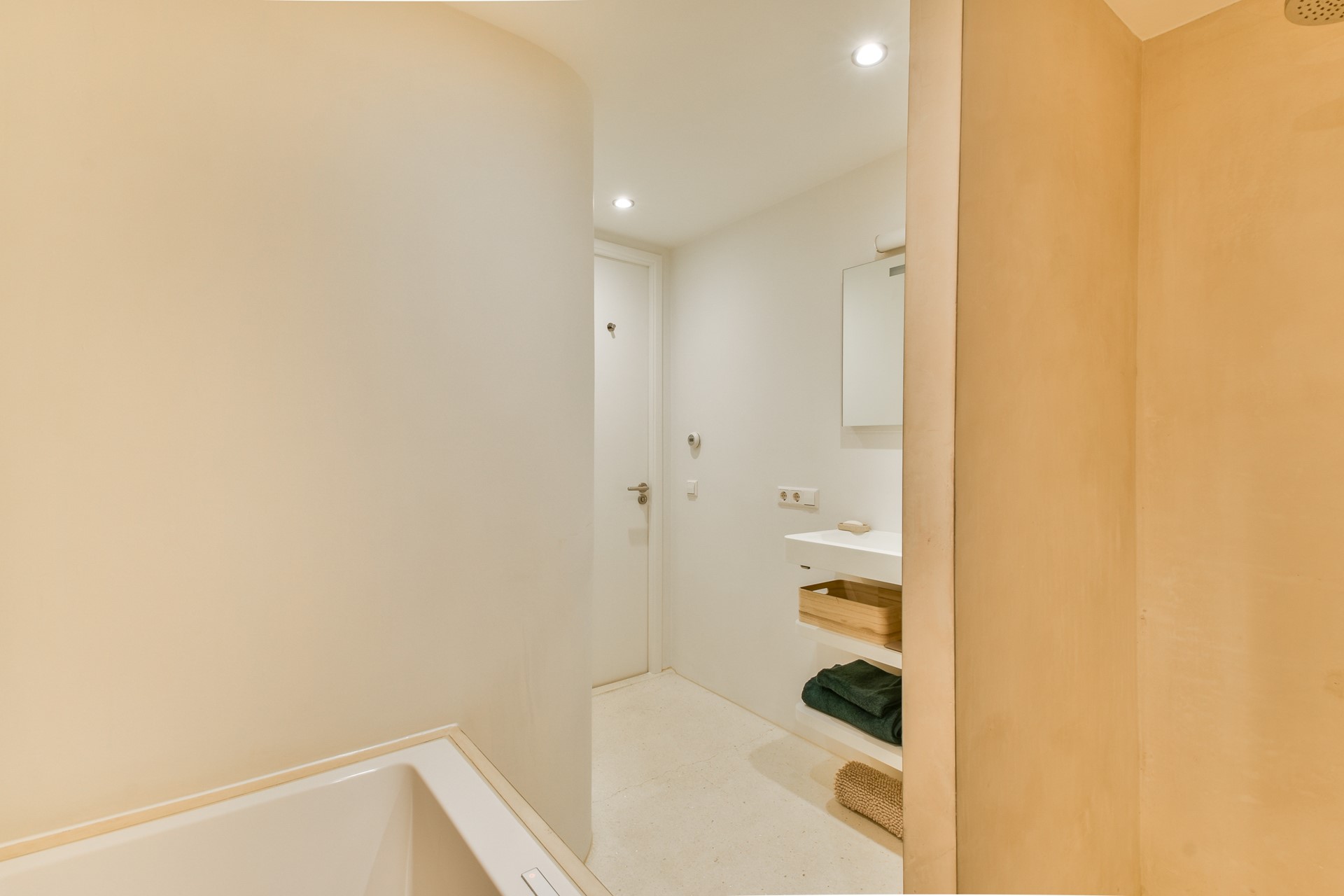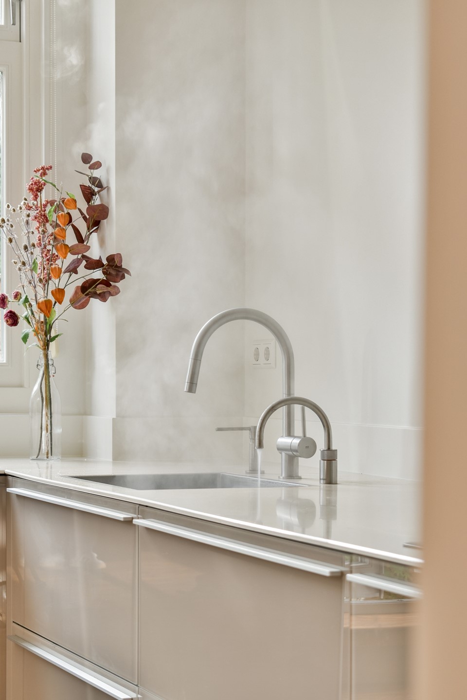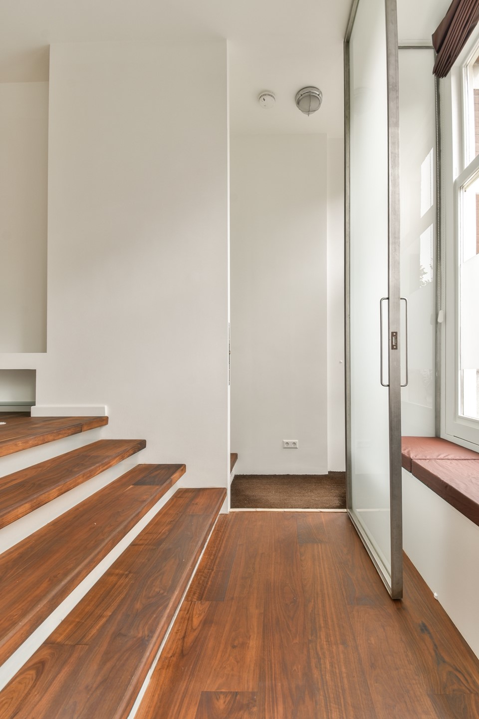 Private entrance on the ground floor. Through the hallway, you enter the living room. This floor has an open layout, with the living room in the center and the fully equipped kitchen and dining area at the rear. The kitchen includes a refrigerator, a dishwasher, an induction cooktop, and a Quooker. From the dining area, you can access the terrace and the lower garden through French doors.