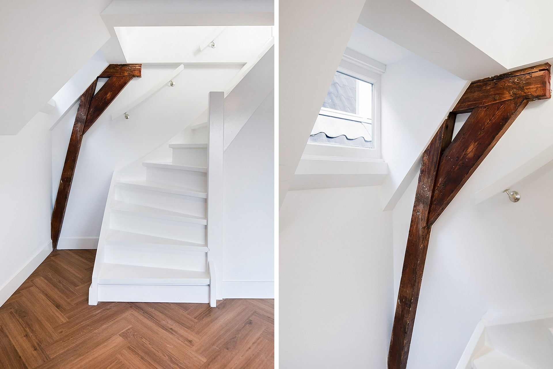 Bij binnenkomst via het nette gemeenschappelijke trappenhuis bereikt u de vierde verdieping, waar deze exclusieve woning zich bevindt. De royale woonkamer aan de voorzijde wordt gekenmerkt door grote ramen, die zorgen voor een prachtige lichtinval en een ruimtelijk gevoel. Aan de achterzijde bevindt zich het royale dakterras, De moderne open keuken is een droom voor kookliefhebbers en uitgerust met hoogwaardige inbouwapparatuur, waaronder: koelkast en vriezer met drie laden, combi-oven magnetron, Quooker voor direct kokend water, 4-pits inductiekookplaat met geïntegreerde afzuiging en vaatwasser. Op de tweede verdieping bevindt zich de ruime slaapkamer, die garant staat voor een goede nachtrust. Direct grenzend aan de slaapkamer ligt de luxe badkamer, voorzien van: wastafel met mengkraan, handdoekenradiator en stijlvolle inloopdouche met regendouche en handdouche.