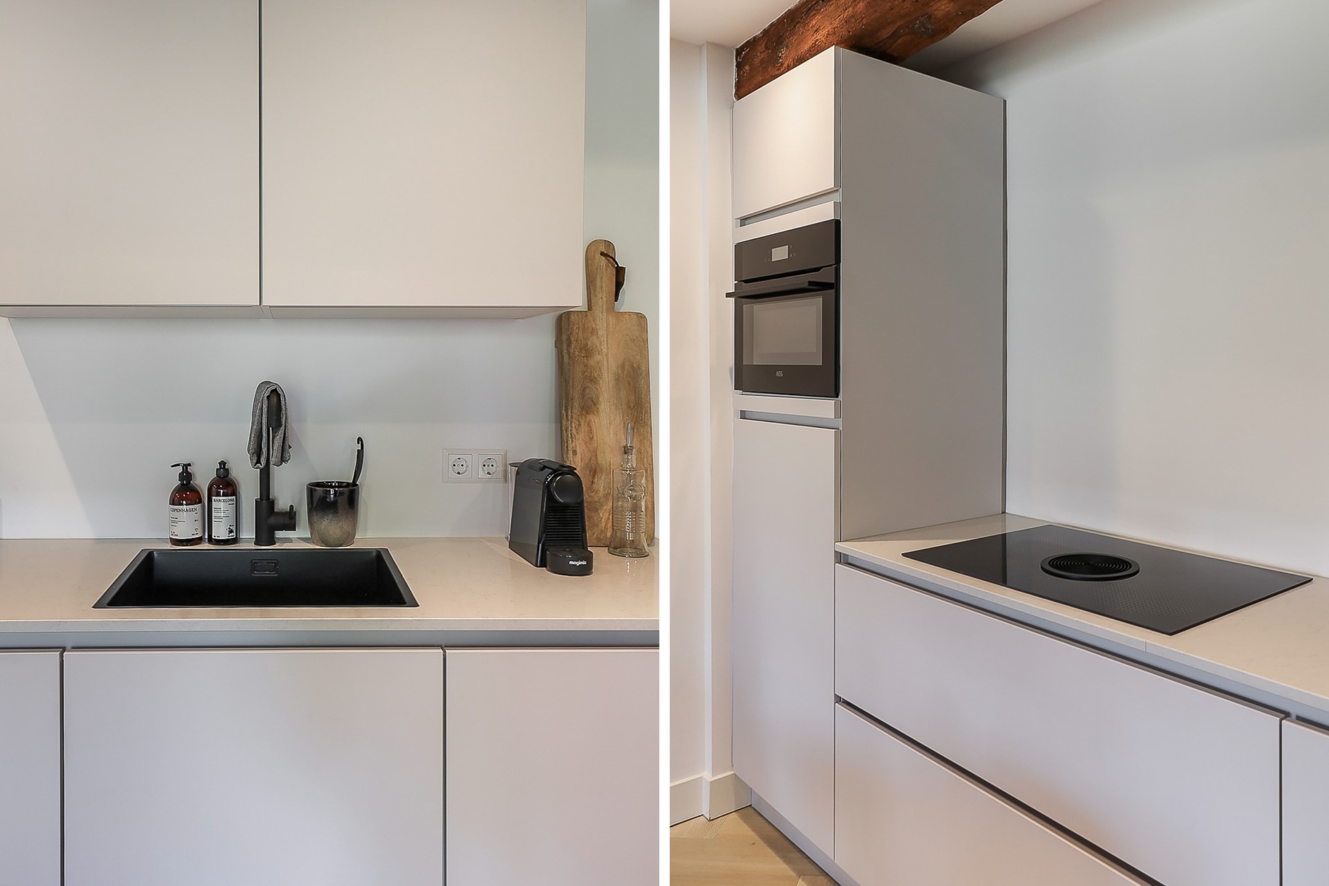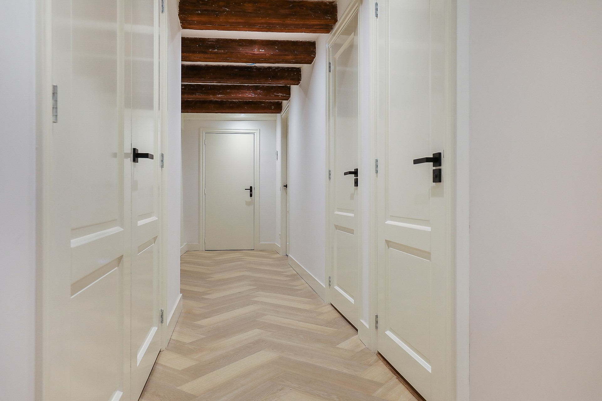 - Entire apartment fitted with herringbone PVC flooring