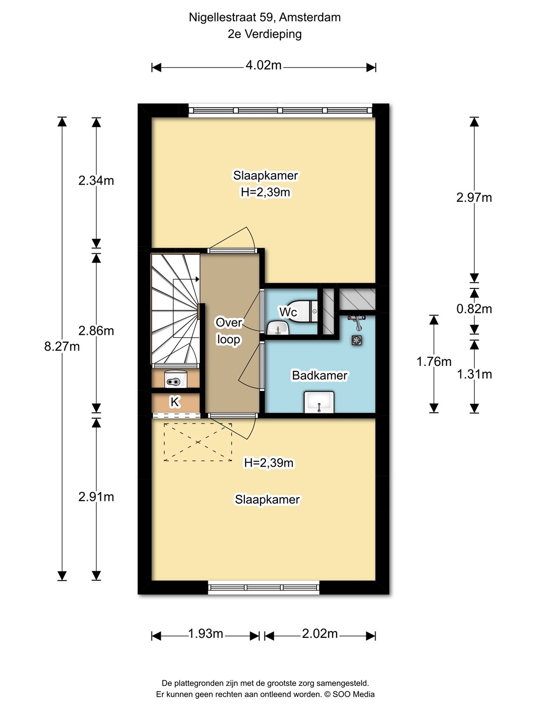 Begane grond: eigen entree met meterkast. Eerste verdieping: lichte woonkamer aan de voorzijde en een open keuken (2026) aan de achterzijde met toegang tot het balkon. Tweede verdieping: overloop, apart toilet, badkamer en 2 ruime slaapkamers. Zolder: bereikbaar via een vlizotrap; ideaal als extra inpandige bergruimte. Extern: berging aanwezig.