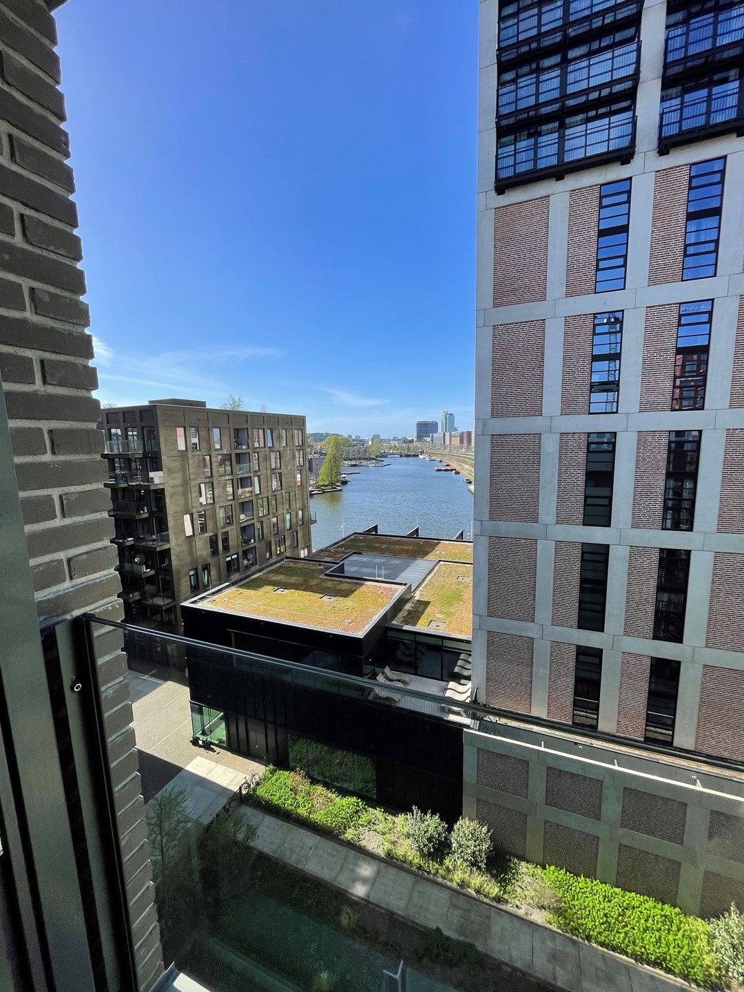 In this 2 bedroom penthouse like apartment you will find everything you need and more. Both living room and bedrooms are spacious. The large windows provide a lot of natural day light. The open kitchen ensures that as much space and openness as possible is created in the living room. A wonderful plus is the balcony, accessible from the living room and with enough space for a nice sitting area. As soon as you wake up, you open the balcony door and you immediately enjoy a beautiful view of the city environment. The masterbedroom has a nice waterview.