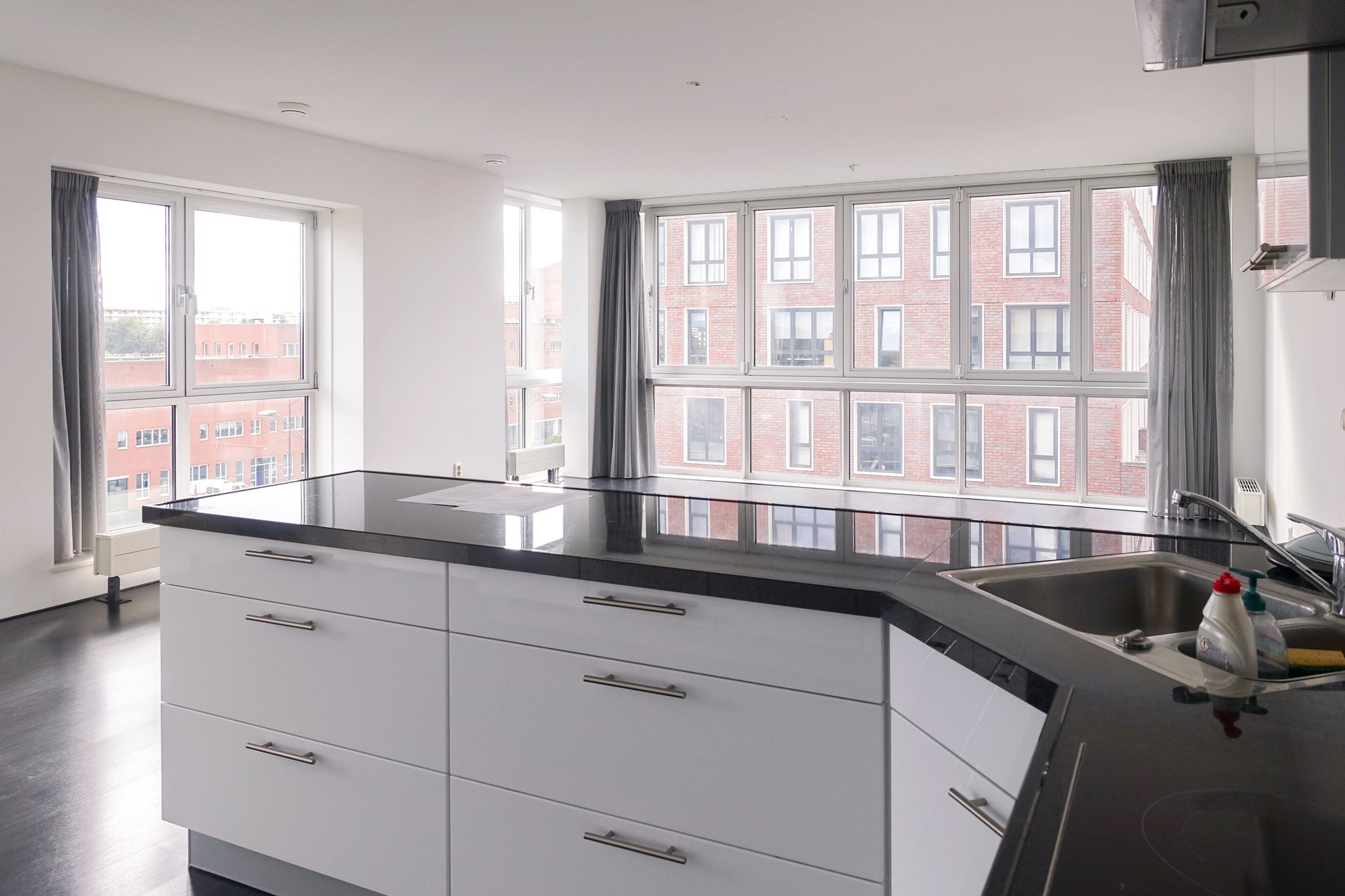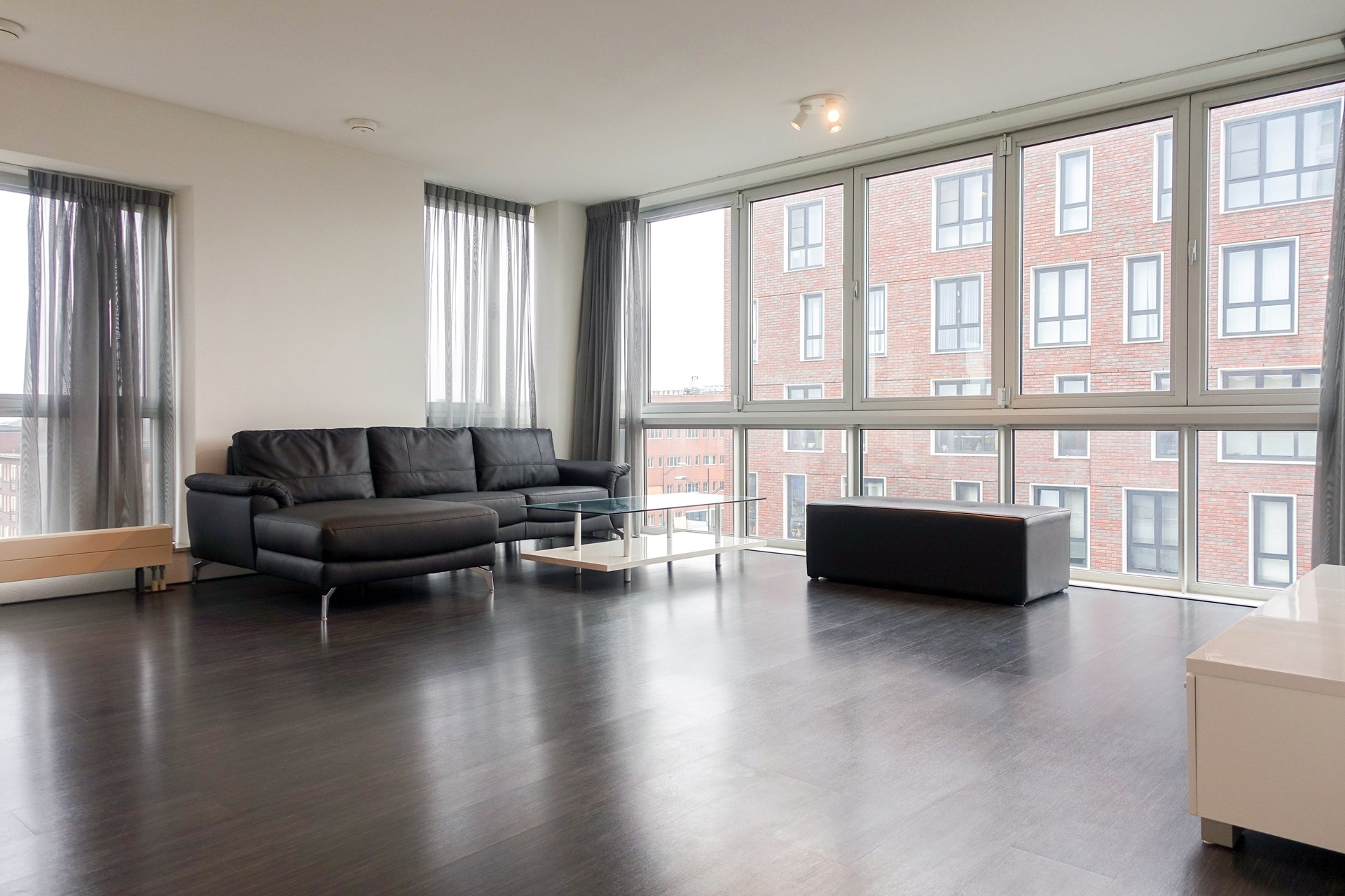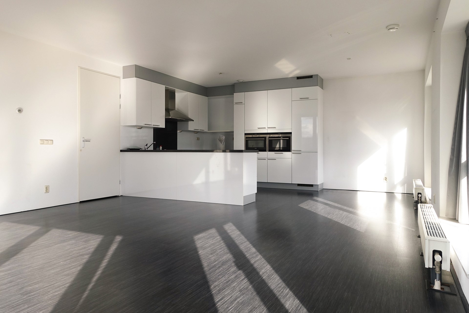 Een van de eerste dingen die opvalt wanneer u binnen bent is de hoeveelheid licht in het appartement. De enorme raampartijen zorgen voor veel lichtinval in de woonkamer met open keuken. De keuken is voorzien van diverse apparatuur.
