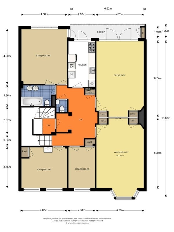 Layout, private entrance, large corridor, bathroom with bath. Separate toilet.