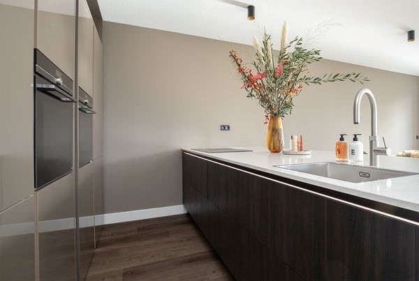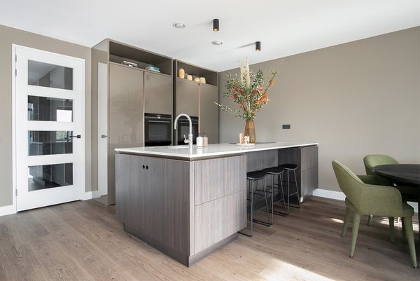 De woonkamer heeft een mooie open ligging op de hoek van het complex. De hoge kozijnen met draai- kiep ramen (met elektrische zonwering!) brengen veel licht naar binnen. De open SieMatic keuken is voorzien van een kookeiland met bar, Quooker kraan en Siemens inductiekookplaat met geïntegreerde kookveldafzuiging. De keuken is verder voorzien van veel bergruimte, koel/vriescombinatie, vaatwasser en 2 luxe Siemens StudioLine (stoom)ovens. Het ruime terras, gelegen op het Zuiden is bereikbaar via de 2 openslaande deuren en heeft een mooi uitzicht op veel groen en water (Amsterdam Rijnkanaal)
