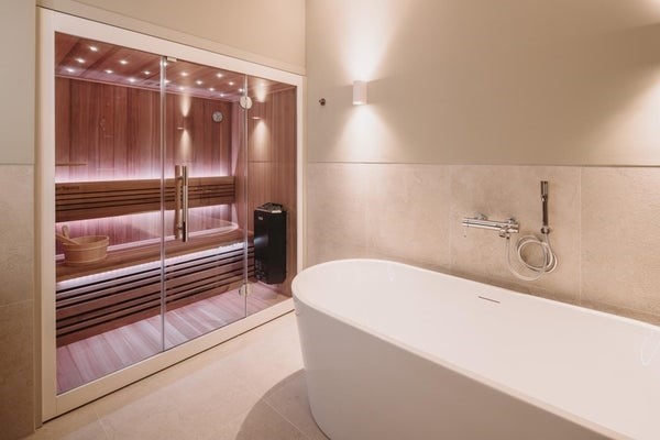 * Luxe badkamer met sauna (!), ligbad, inloopdouche, tweede toilet en bidet