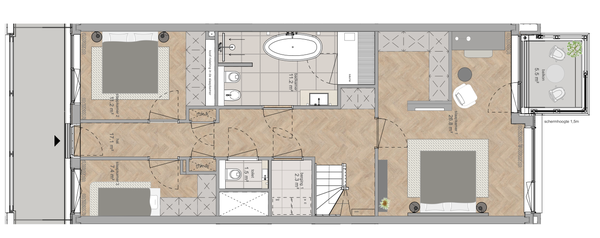 De gebruikte foto’s dienen uitsluitend ter impressie en zijn afkomstig van de modelwoning en/of een vergelijkbaar type woning binnen het complex. Aan deze aanbieding kunnen geen rechten worden ontleend.