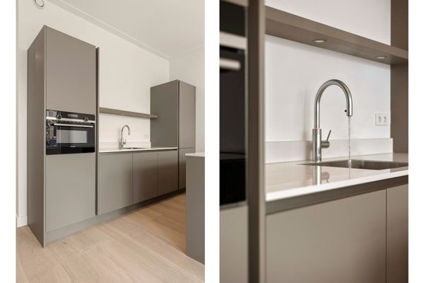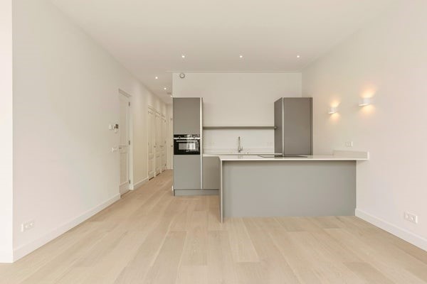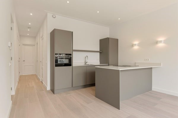 De woning bevindt zich op de eerste verdieping en is bereikbaar via het gemeenschappelijke trappenhuis. Bij binnenkomst komt u in de lichte woonkamer met grote raampartijen die zorgen voor een prettige hoeveelheid natuurlijk licht. De open keuken is voorzien van diverse inbouwapparatuur en biedt voldoende werk- en opbergruimte. De hoogwaardige materialen en moderne afwerking maken het geheel tot een stijlvolle en comfortabele woonomgeving.
