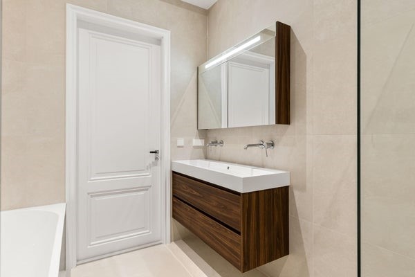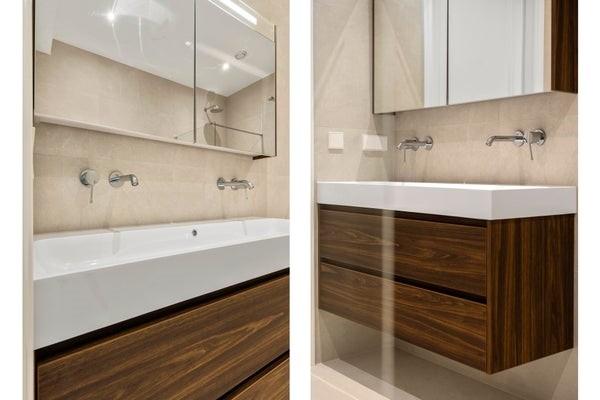 Het appartement beschikt over twee comfortabele slaapkamers die naar wens kunnen worden ingericht. De badkamer is luxe afgewerkt en beschikt over een dubbele inloopdouche, een dubbele wastafel met meubel en een comfortabel ligbad. Daarnaast is er een separaat toilet en ruimte voor wasapparatuur. Het royale terras biedt een fijne buitenruimte en maakt het appartement compleet.