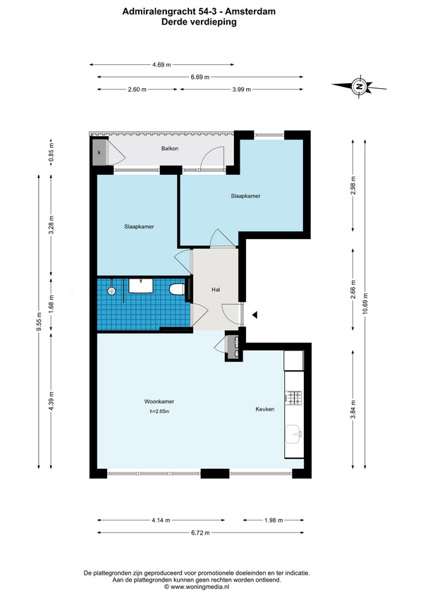 Entree op tweede verdieping, ruime en zeer lichte woonkamer door grote raampartijen met en een wijds uitzicht over de Admiralengracht. De open keuken is voorzien van diverse inbouwapparatuur. De 2 slaapkamrs zijn gelegen aan de rustige achterzijde. Waar men tevens toegang heeft tot het balkon. De moderne badkamer heeft een met ruime douche, wastafel met meubel en een wc. Op de bovengelegen verdieping is een separate berging van ca 10m2 aansluiting voor een wasmachien/droger en een wastafelmeubel.