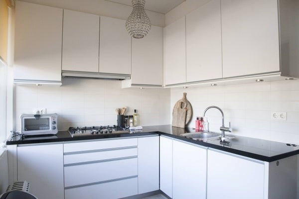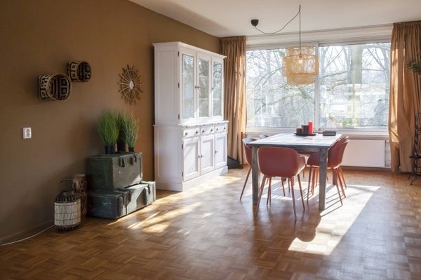 This lovely apartment comes fully furnished and is located on the second floor of a well kept apartment complex with elevator. It has three good sized bedrooms and two balconies, one of them with a lovely view facing the Gijsbrecht van Aemstelpark.