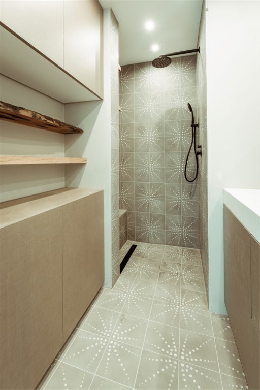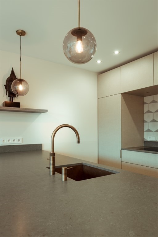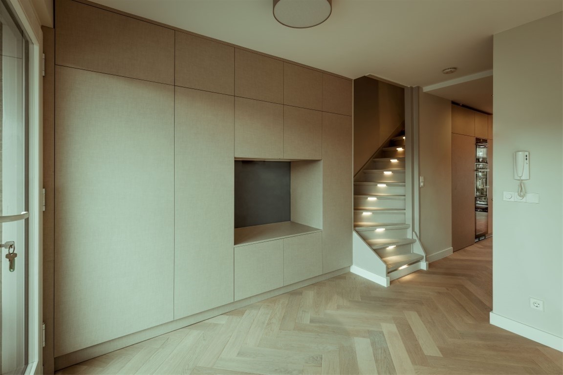 The interior is inspired by nature and earth- toned colors, crafted details and natural materials, together with the warm LED lights, design tiles and brass details, the apartment has a unique stylish and warm ambiance.