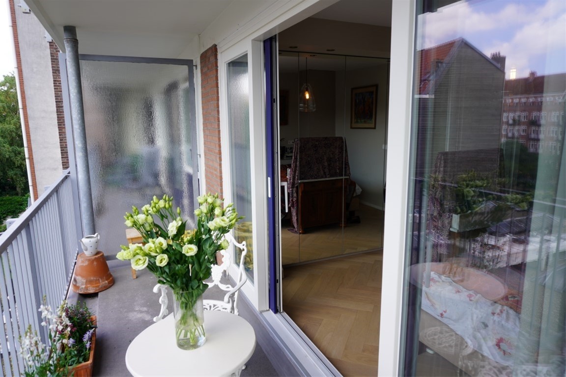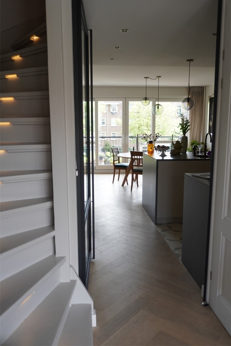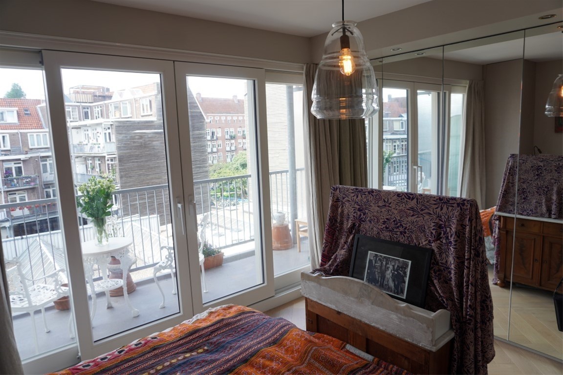 A renovated 05 room maisonette apartment of approx. 100 m2 with three balconies, the ones facing the water have large and comfortable sliding doors for optimal pleasure of the great wide view over the canal, with many boats passing by. The apartment is situated in a lively area near Vondelpark and the British school, with several shops and terraces close by. The property has been renovated with great care and the choice of materials is high standard only.