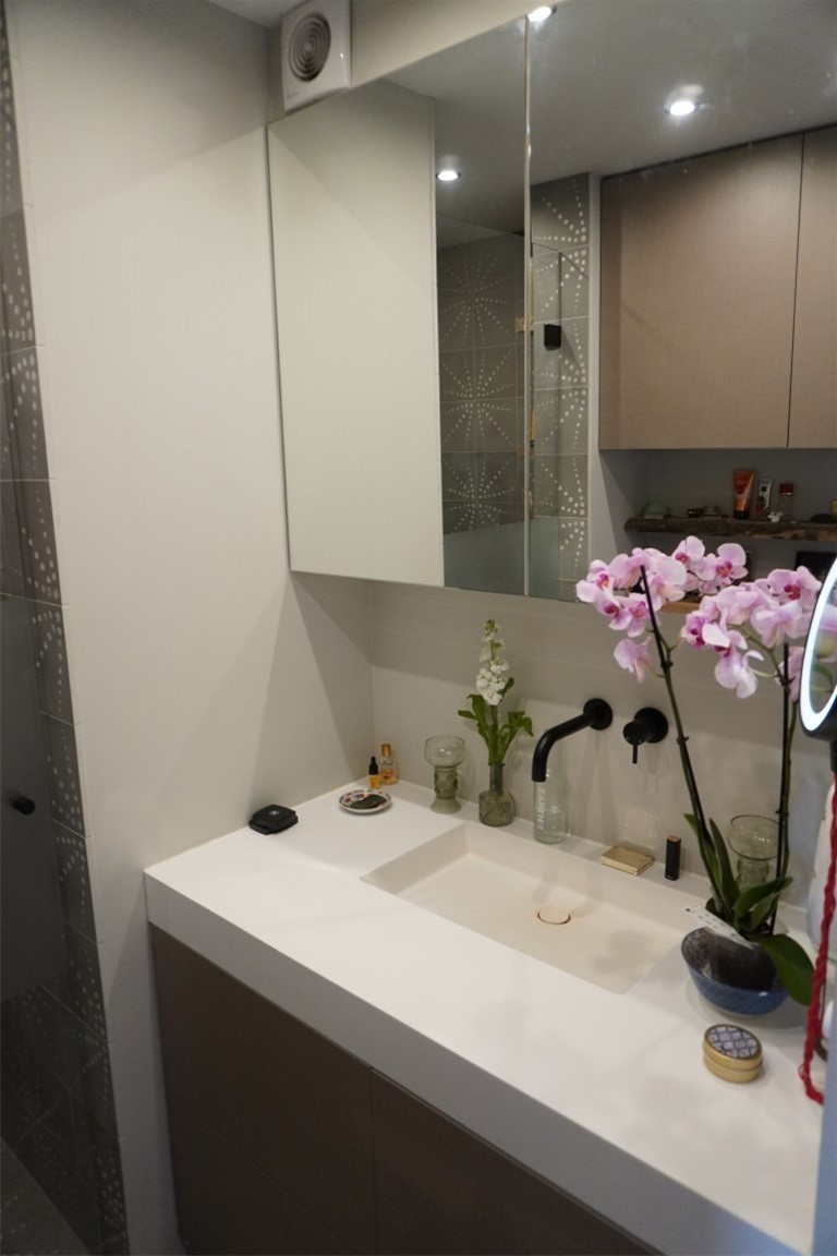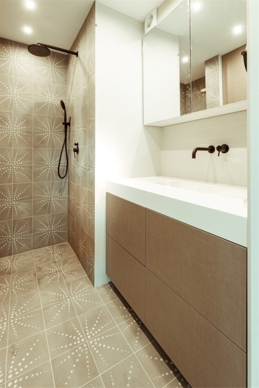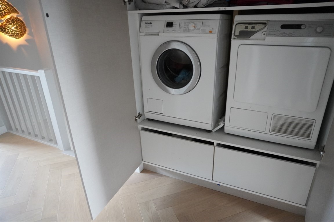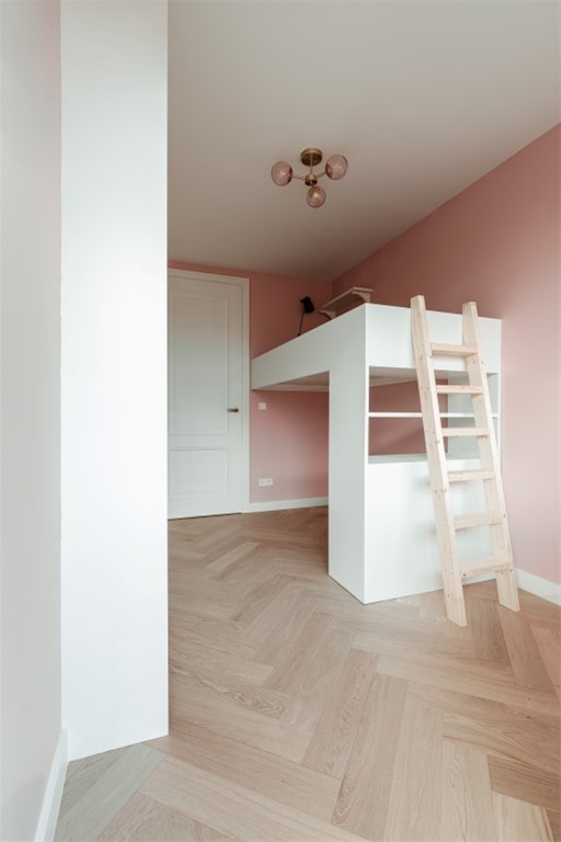 Open staircase with indirect light below steps to the upper level, well sized main bedroom on the back with build-in wardrobe and balcony facing South West. The 02 children’s bedrooms on the front are both equipped with a loft bed and build-in wardrobes. Both rooms offer a door to a canal view balcony. The bathroom with handmade design tiles offers a walk-in shower, multiple stylish wooden cupboards and modern basin.