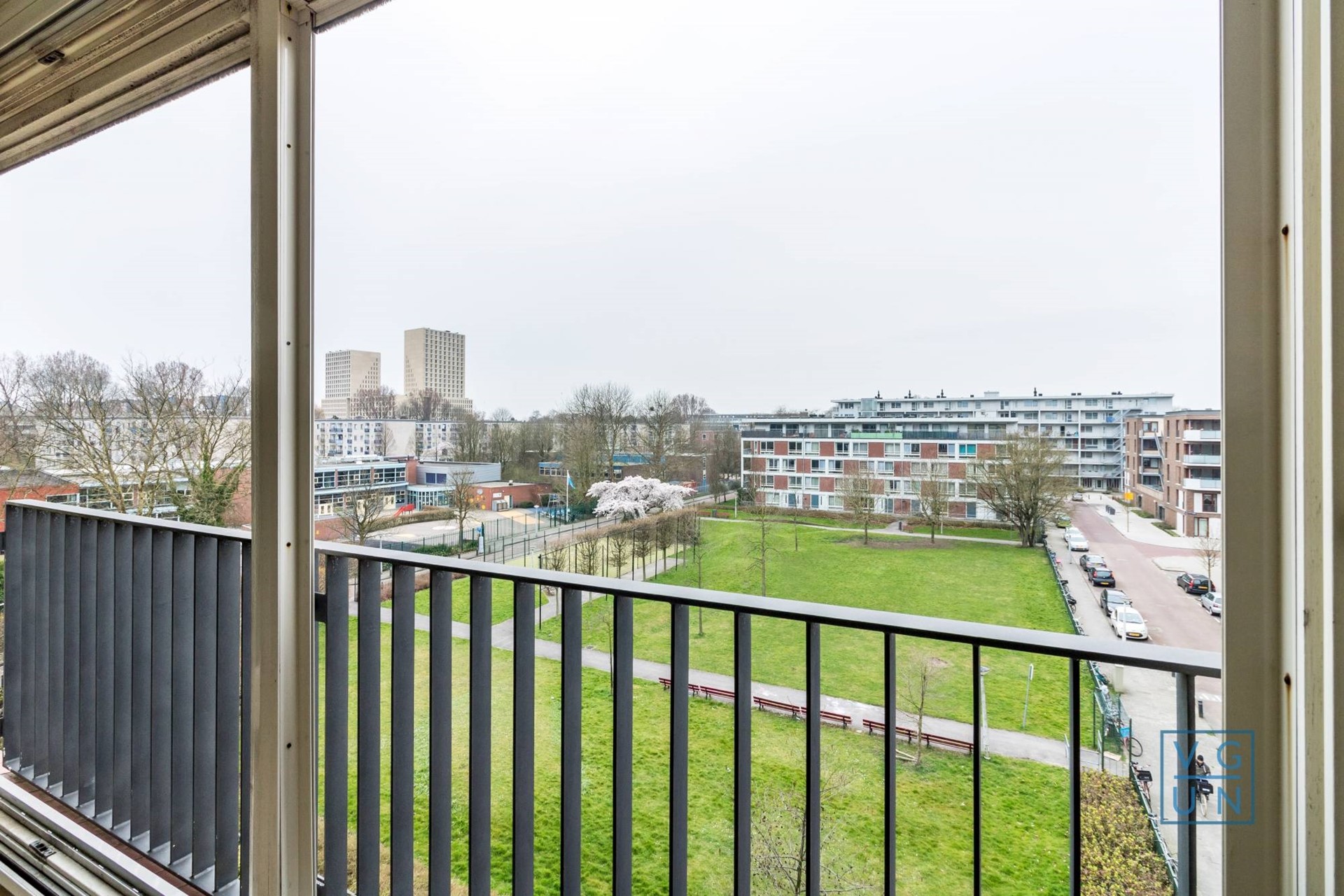Via de centrale nette hal kunt u met de lift of trap de 4de etage bereiken. Hal, apart toilet, nette badkamer met bad en dubbele wastafel. Ruime slaapkamer. De hal komt uit in de woonkamer met prachtig uitzicht. Nieuwe, open keuken met inbouwapparatuur. Via de woonkamer bereikt u de tweede slaap/werkkamer en/of overdekt balkon. Door middel van harmonicadeuren kan de pui volledig open! Via de lift of trap bereikt u de privé berging van 4m2 en een eigen parkeerplek gesitueerd onderin het complex! De woning is gelegen op een hoek dus met extra ramen en veel licht!
