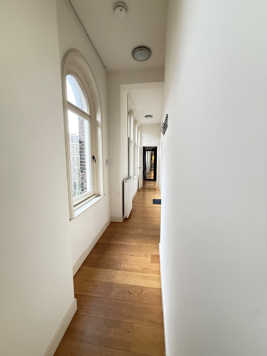 Via het gemeenschappelijke trappenhuis bereik je de tweede etage, binnenkomst in de hal vanwaar toegang tot de woonkamer met aparte eethoek. De keuken is voorzien van alle gewenste inbouwapparatuur. Middels de hal bereik je beide slaapkamers, de badkamer en het separate toilet.