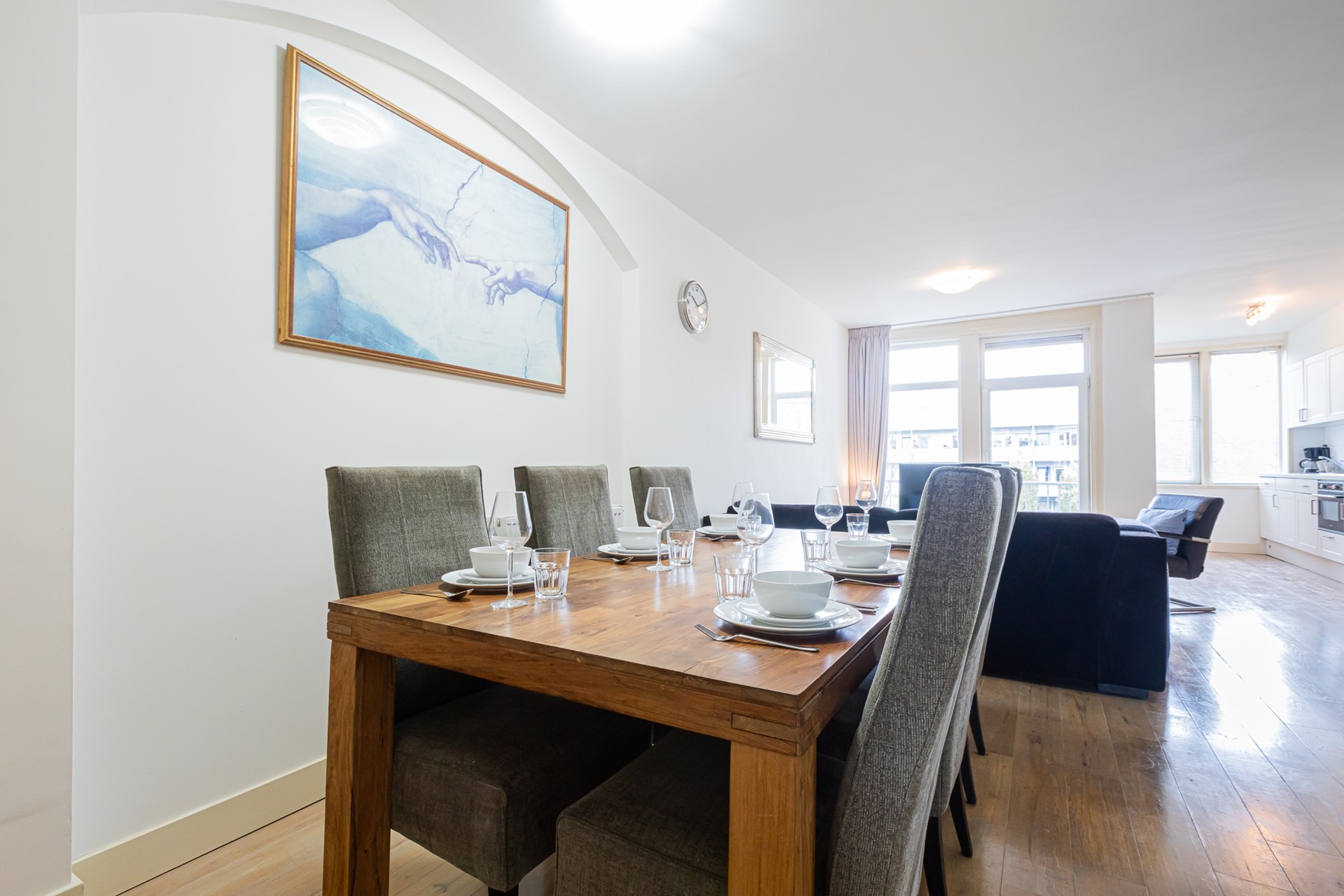 We offer this furnished apartment on the Tweede Hugo de Grootstraat between Oud West and the canals with two bedrooms.