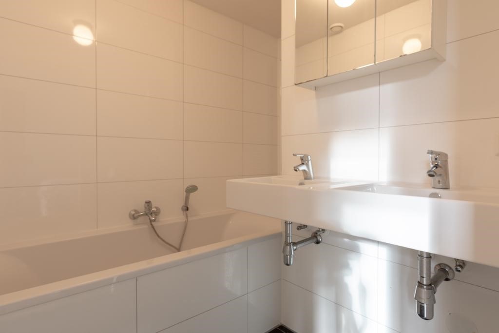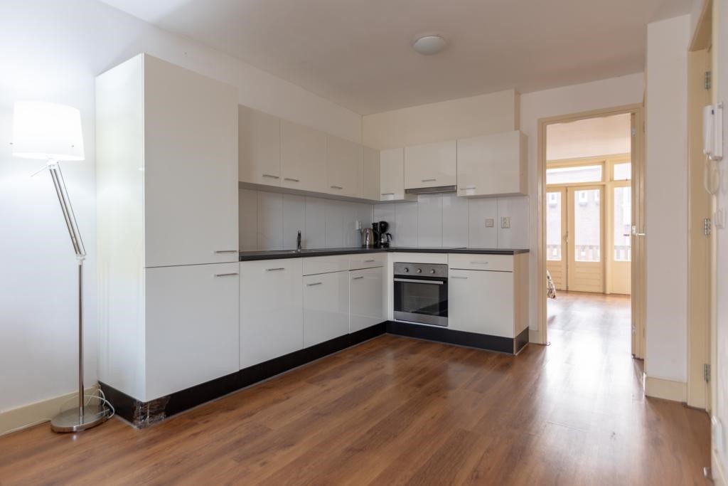 Entrance via the communal staircase on the first floor. The living room with fully equipped open kitchen is located at the front with a view of the Hugo de Grootplein. The kitchen is equipped with a fridge and freezer, induction stovetop, There are two bathrooms, the first with a shower and the second with a bath. At the rear is the quiet bedroom and access to the balcony. The house is delivered furnished.