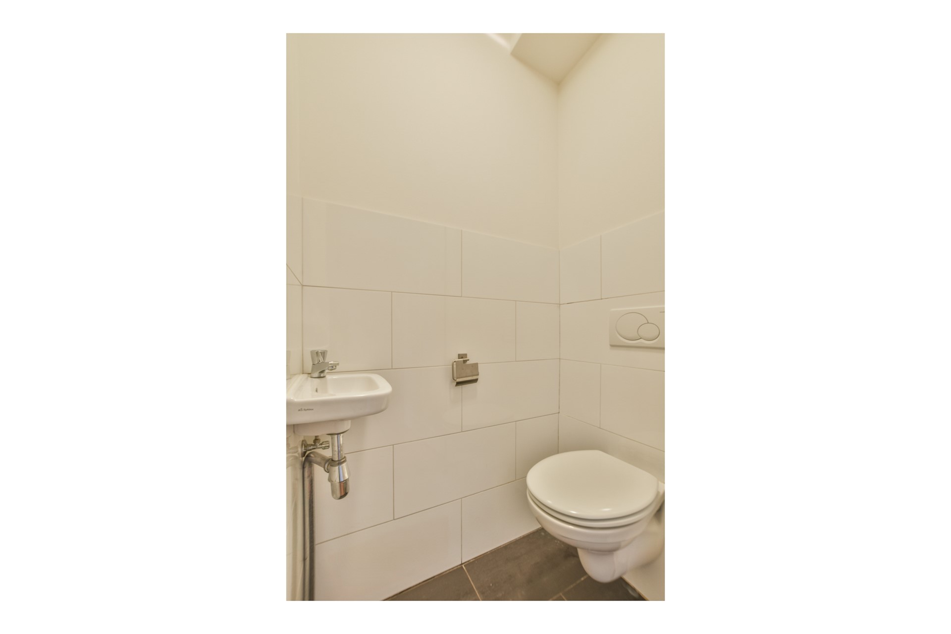 Through the communal staircase you reach the apartment on the second floor. Because of the large windows the light enters the living room at the front. The open kitchen is equipped with built in appliances. The hall gives access to the other rooms. The bathroom has a bathtub, shower and sink. There is a separate toilet. At the rear is the master bedroom with double bed, closet and access to the balcony. The second bedroom is in use as a walk-in closet, the closet can be removed in consultation.