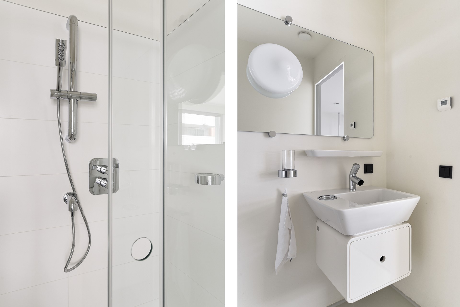 The Urban Residences are of an unprecedented high level of finish. The impressive design kitchen by Alessi/Valcucine with built-in appliances (dishwasher, refrigerator, freezer, combi-steam oven, induction hob and extractor hood) from quality brand Miele appeals to the imagination. It goes without saying that the kitchen is fully furnished in style with all the necessary crockery, utensils and glassware.