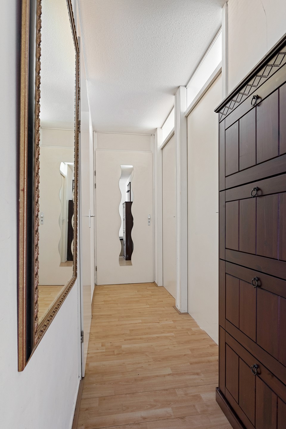 Through the central entrance with doorbells, mailboxes and elevator, you reach the apartment on the 6th floor.