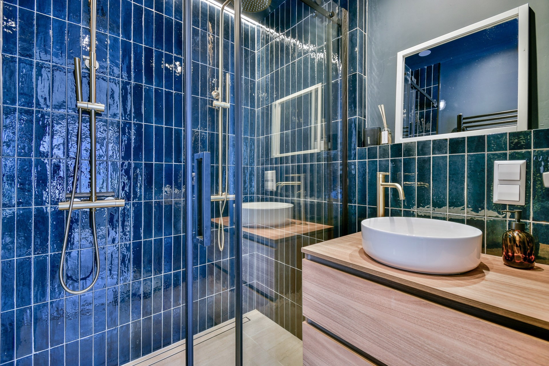 Twee badkamers, een met bad, een met twee douches, twee toiletten