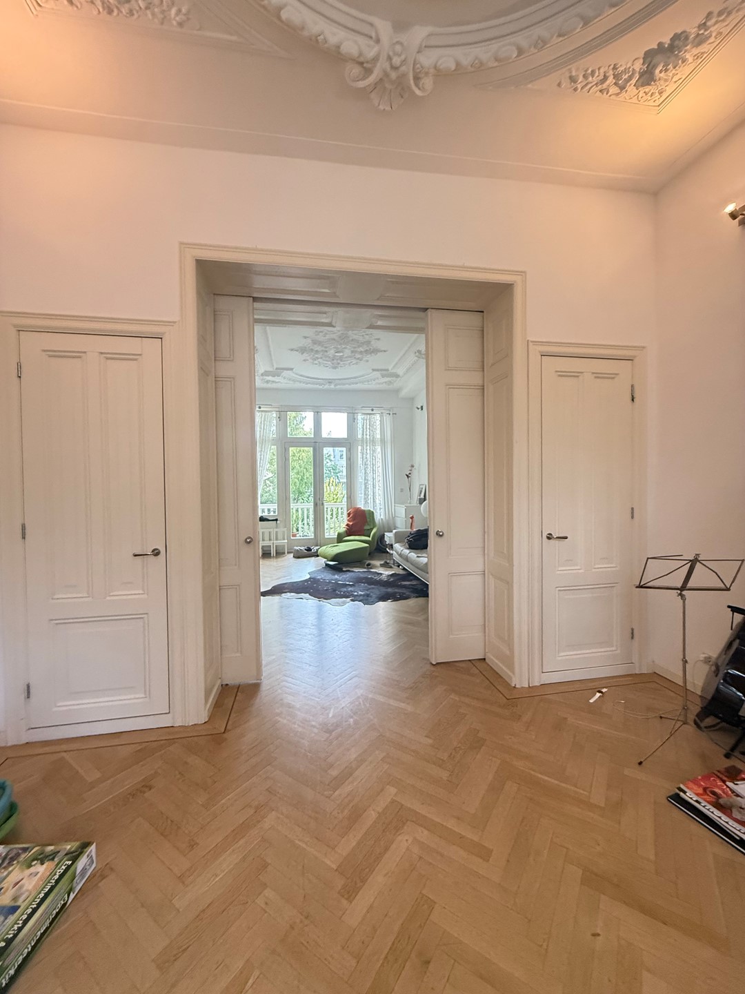 Op een absolute toplocatie tegenover de Vondelkerk en de ingang van het Vondelpark, op slechts vijf minuten lopen van het Leidseplein, bieden wij dit prachtige, recent gerenoveerde appartement te huur aan. Het appartement is gelegen op de eerste verdieping van een karakteristiek pand uit het begin van de vorige eeuw en beschikt over authentieke details, waaronder hoge plafonds met ornamenten, ensuite deuren en een visgraat massief eikenhouten parketvloer.