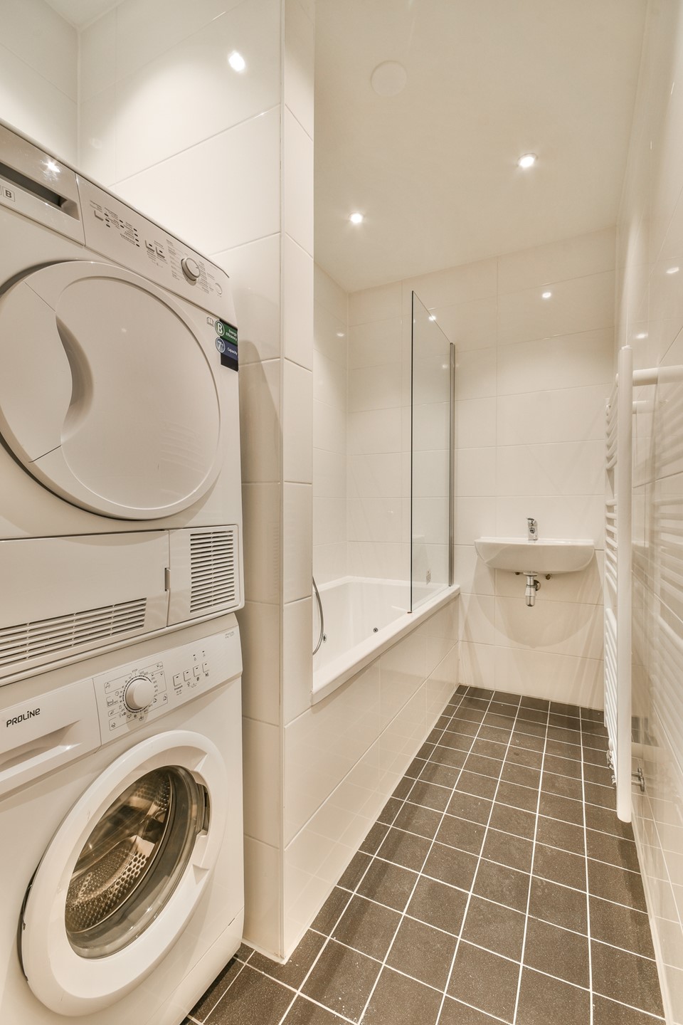 Entrance via the communal staircase on the third floor. Upon entering you immediately enter the living room. The living room is located at the front of the house with access to the French balcony. The open kitchen is fully equipped. Through the hall you enter the rear of the house where both bedrooms are located. The first bathroom has a toilet and shower. The second bathroom has a bathtub, sink, washer and dryer.