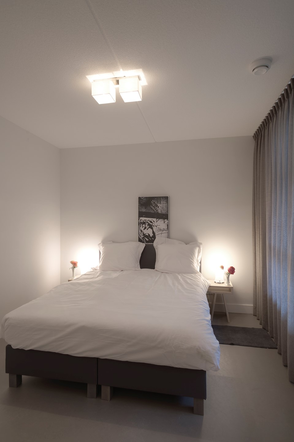 Het appartement beschikt over twee slaapkamers. De master bedroom is smaakvol gemeubileerd en voorzien van een tweepersoonsbed en kledingkast. In de tweede slaapkamer vindt u een logeerbed en een kledingkast.