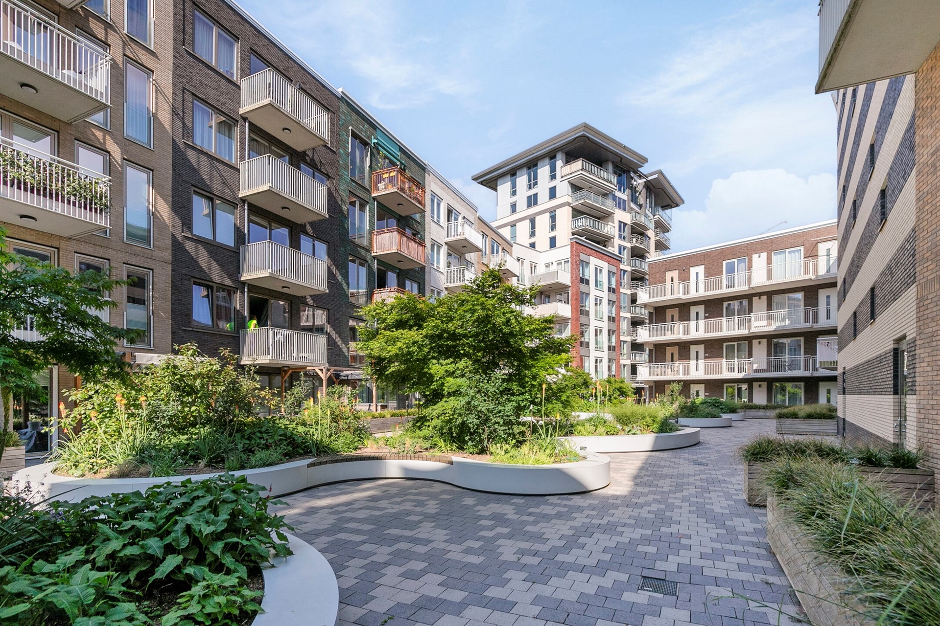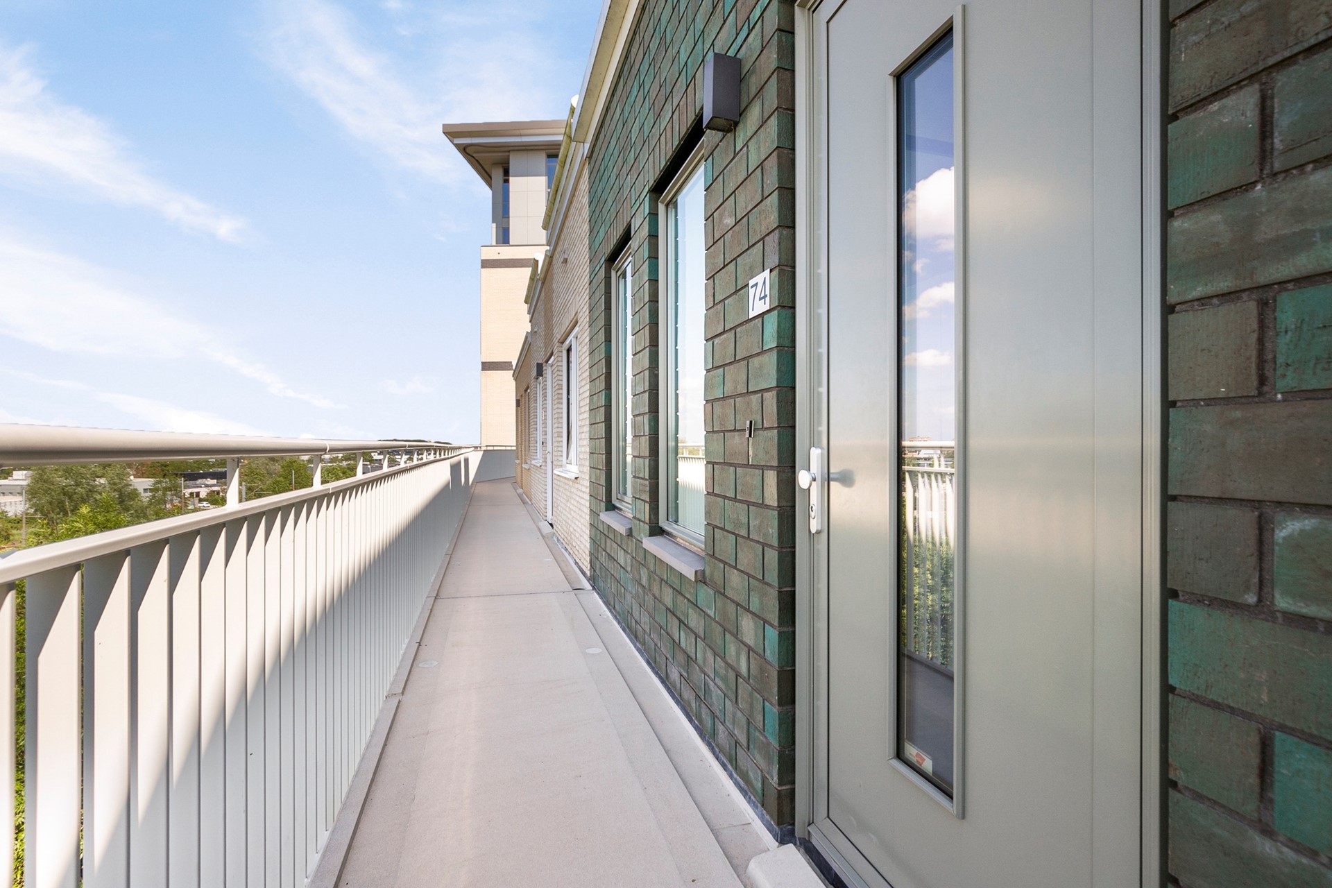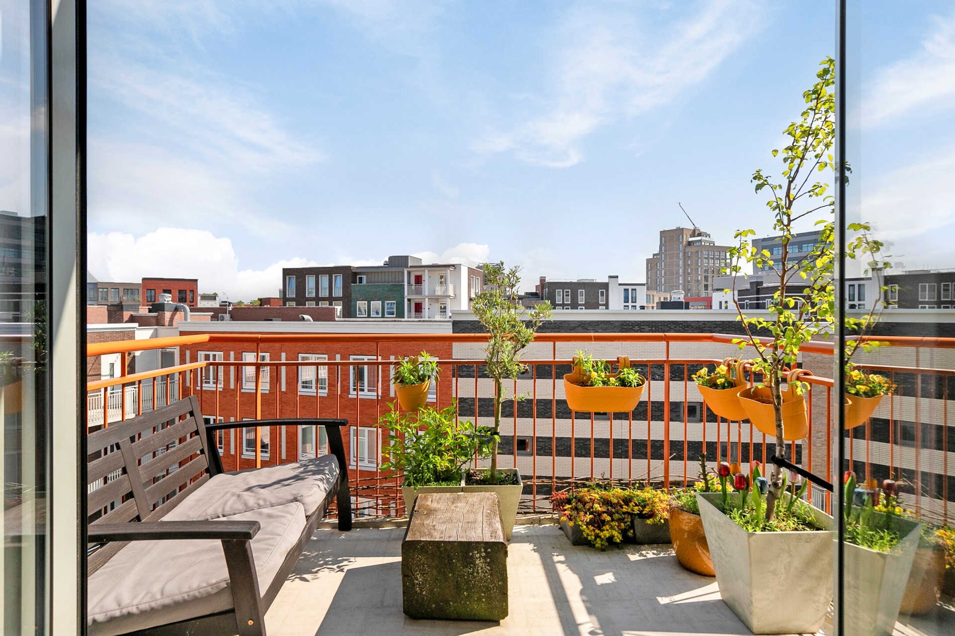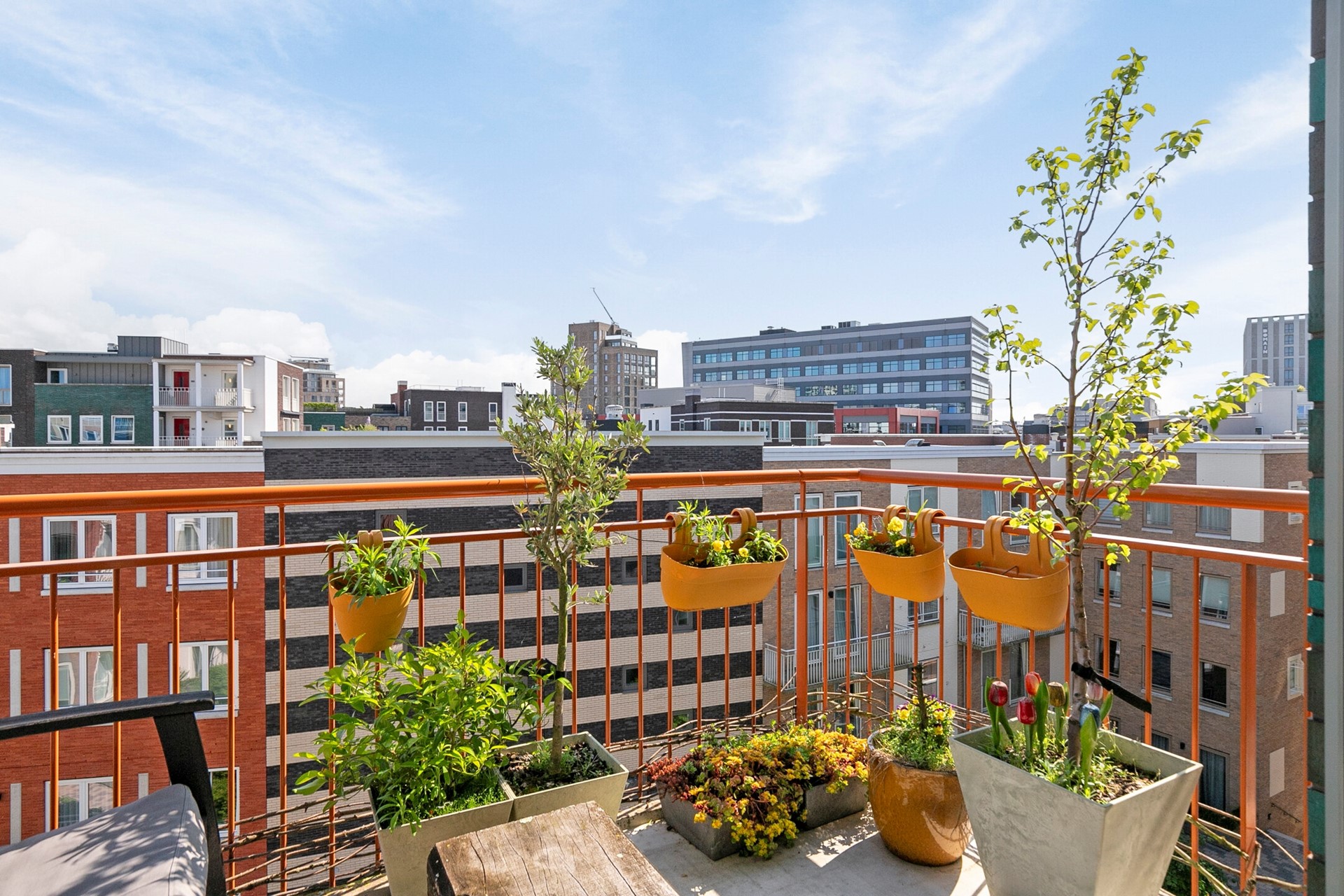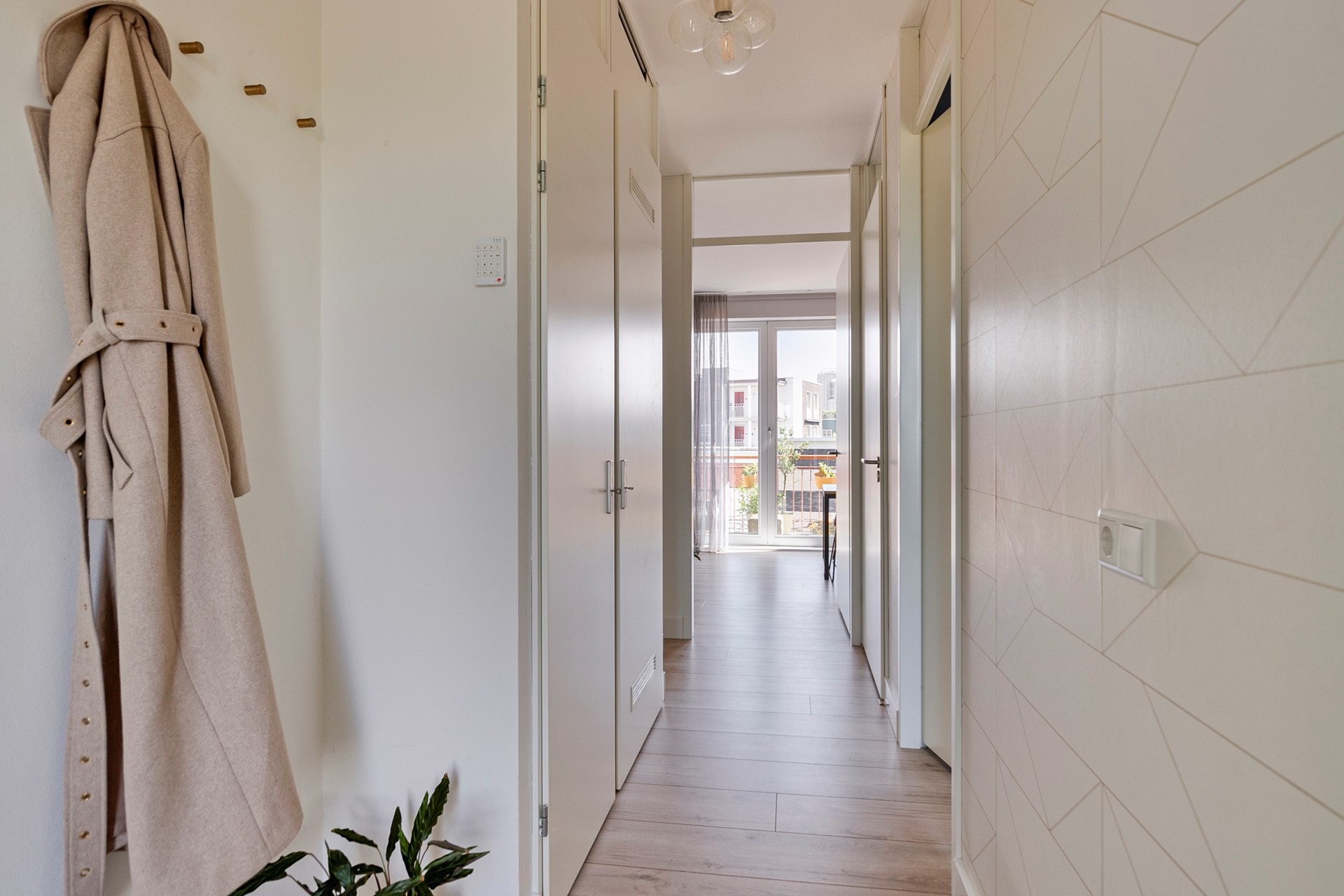 Centrale entree met lift en trappenhuis welke toegang geeft tot de bovenliggende etages. Via de galerij op de 5e verdieping bereikt u de woning. Entree met hal en toegang tot de verblijfsruimtes. De woonkamer is aan achterzijde gelegen en over de gehele breedte gesitueerd en genereerd daardoor veel daglicht. De luxe open keuken is v.v. alle wenselijke inbouw apparatuur als een vaatwasser, inductie kookplaat, oven en Amerikaanse koelkast met vriezer. Vanuit de woonkamer toegang tot het terras. Via de keuken toegang tot de berging met was/ droog combinatie. De slaapkamers zijn beide aan de voorzijde gelegen. De 2e slaapkamer heeft een ruime inbouwkast en komt met werkplek. De ruime badkamer heeft een inloop douche, bad en luxe wasbak. Het toilet is separaat op de hal.