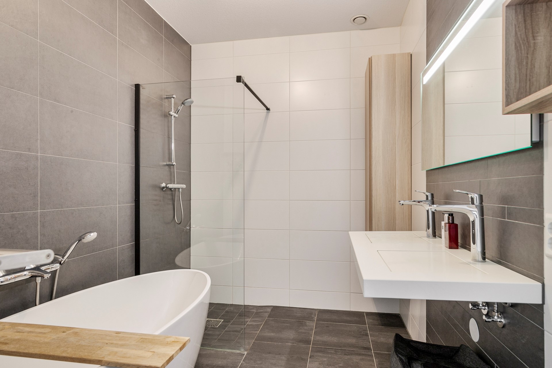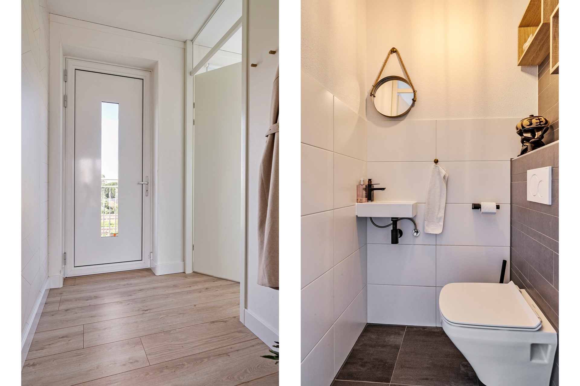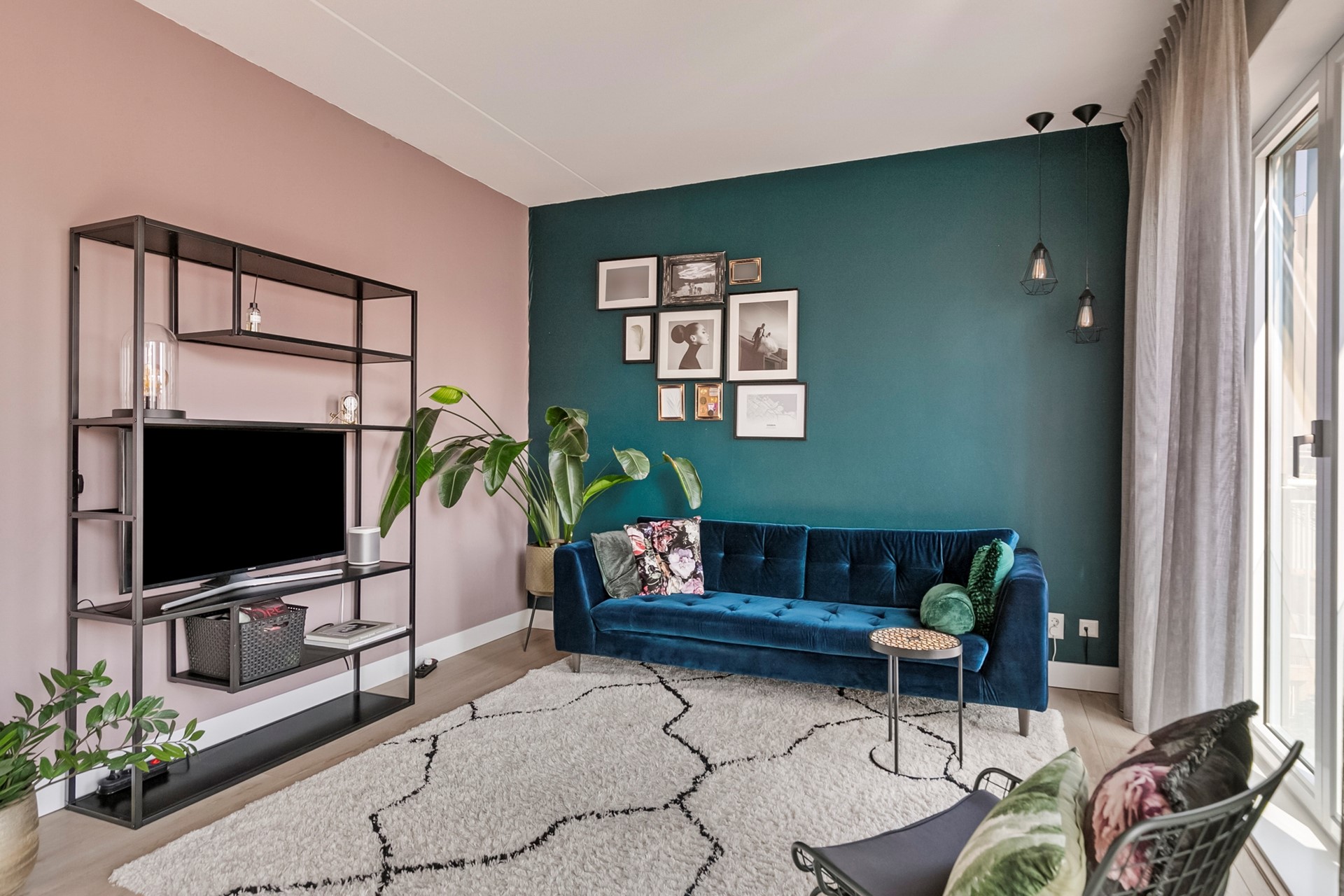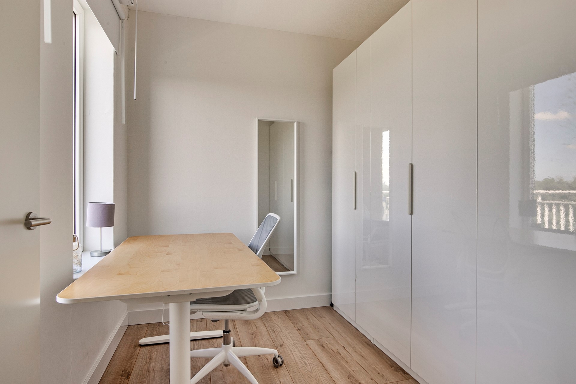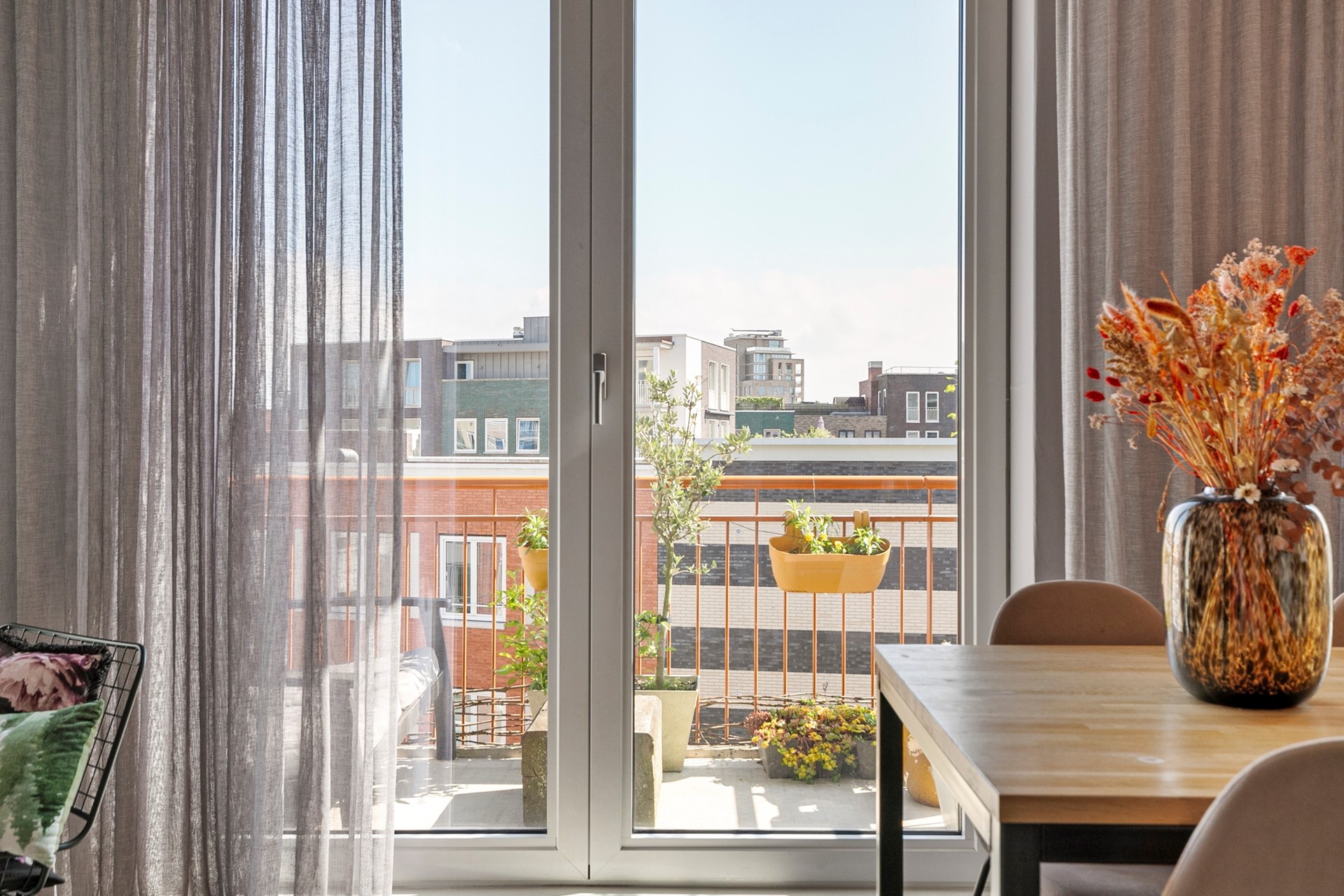 Centrale entree met lift en trappenhuis welke toegang geeft tot de bovenliggende etages. Via de galerij op de 5e verdieping bereikt u de woning. Entree met hal en toegang tot de verblijfsruimtes. De woonkamer is aan achterzijde gelegen en over de gehele breedte gesitueerd en genereerd daardoor veel daglicht. De luxe open keuken is v.v. alle wenselijke inbouw apparatuur als een vaatwasser, inductie kookplaat, oven en Amerikaanse koelkast met vriezer. Vanuit de woonkamer toegang tot het terras. Via de keuken toegang tot de berging met was/ droog combinatie. De slaapkamers zijn beide aan de voorzijde gelegen. De 2e slaapkamer heeft een ruime inbouwkast en komt met werkplek. De ruime badkamer heeft een inloop douche, bad en luxe wasbak. Het toilet is separaat op de hal.