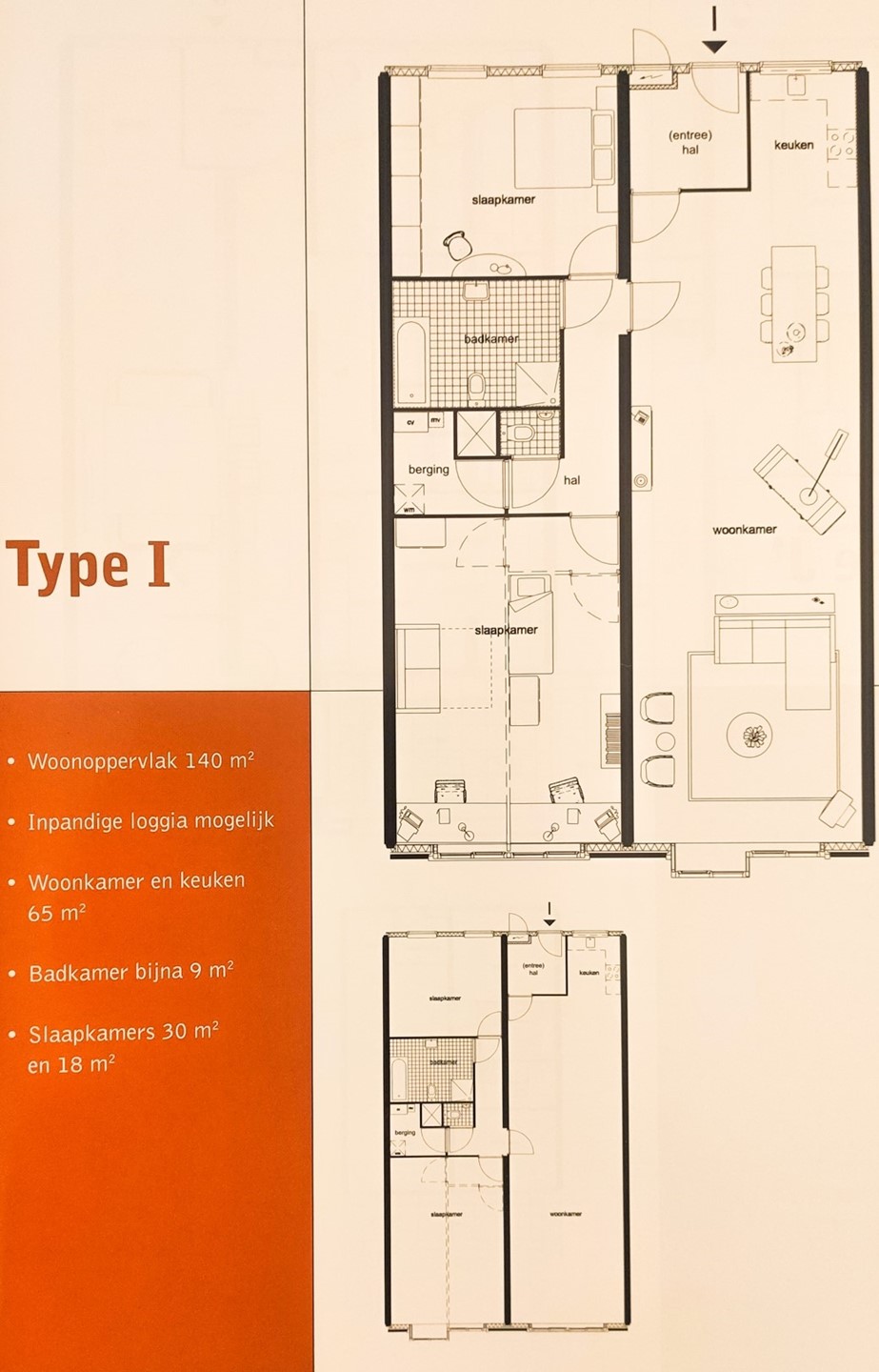 De twee slaapkamers aan weerzijden van het appartement zijn ruim bemeten, 18m2 en 30m2, en voorzien van kamerhoge gordijnen.