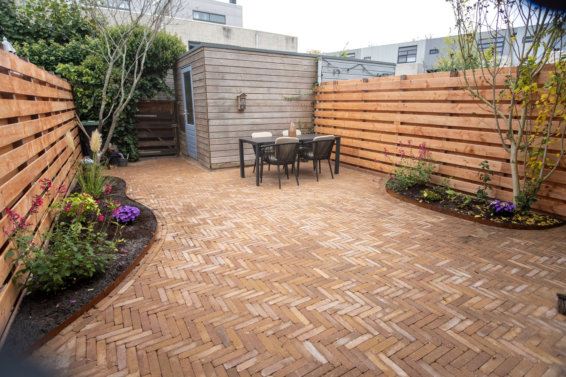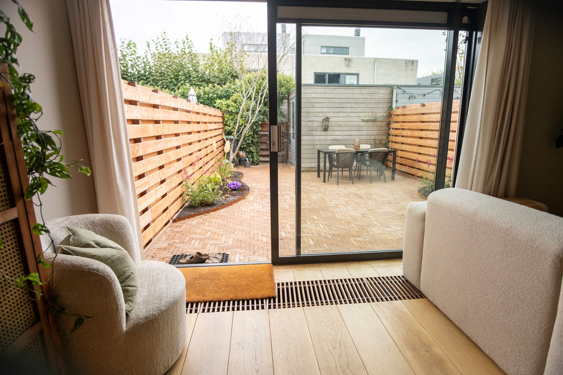 Upon entering, you are welcomed into a neat hallway with access to the modern toilet and staircase to the upper floor. The spacious and bright living room features a comfortable seating area and sliding doors that open onto the garden. At the front of the house, you’ll find the open-plan kitchen, fully equipped with built-in appliances including a dishwasher, fridge-freezer, and combination oven/microwave. The kitchen will be renovated in November 2025 (before move in date). The garden has been newly landscaped and enjoys a sunny southeast orientation—ideal for morning and early afternoon sun. At the rear of the garden is a practical storage shed and a convenient back entrance.